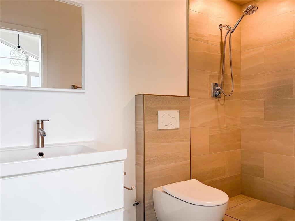 The oversized garage is both practical and pristine, complete with epoxy floors, in-floor heating, and ample space for storage or hobbies.