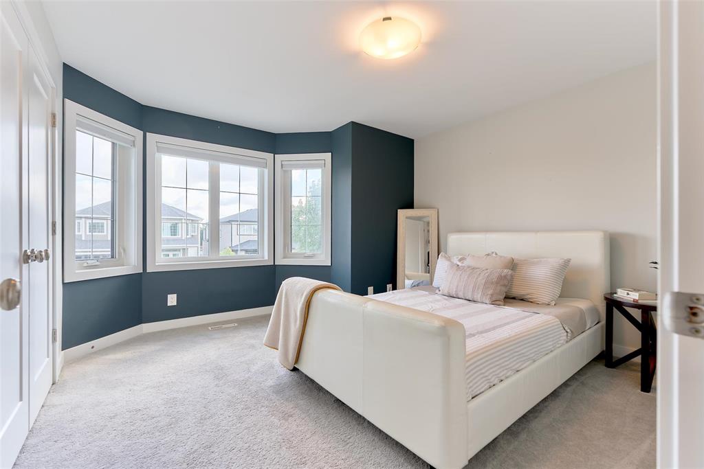 Open House Oct 18th 1pm-3pm. Offers will be dealt with the evening in which received. Gorgeous former Gino's show home located in highly desirable Bridgewater Trails. Open concept main floor offers 9ft ceiling with laminate floor throughout. Living room comes with built-in shelves & speakers, double sided fireplace on remote with tile surrounds ideal for family entertainment. The kitchen loaded with maple cabinets, stainless steel appliances, quartz countertop and corner pantry with organizer. Double patio door off to an approx. 16 x 12 wood deck with privacy screen. Low maintenance back yard features a parking pad for two cars plus gravel space with endless possibilities. Complete Hardy-board Maintenance Free exterior w/front concrete patio & landscaped front yard.There are 3 spacious bedroom and 2 full bathroom on 2nd floor. The principal bedroom comes with a 4 piece DELUXE ENSUITE features quartz countertops plus tiled floor, shower and tub. The unfinished basement awaits your personal touch. Great value at this price. Call today.