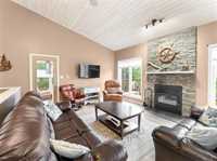 Welcome to 14 Alexander Dr, a gorgeous custom built LAKEFRONT home located in Lester Beach. With a total of 2,648 sq ft of living space including the walk out basement, this home/cottage retreat has room for everyone. Nicely tucked away from the road this beautifully landscaped property has so much to offer. With 9' ceilings on the main floor there are 3 spacious bedrooms and main 4 pc bath. The primary bedroom has a 3pc ensuite & a walk in closet. The kitchen boasts a sit at granite top island a pantry and a dining area that overlooks the lake. The adjacent living room features a focal point fireplace w/stone backing. From here you access the 3 season sunroom leading to the 33 x 12 deck w/pergola. Head on down to the basement where you'll find a recreation room, an office, another bedroom, laundry/utility room & 3pc bath with a sauna. The mudroom with plenty of storage space leads to the hottub enclosed in a screened room. 36 x 24 triple car garage, insulted w/infloor heat. Seasonal bunkhouse, 2 sheds, outdoor shower. Sit by the lakefront and take in the fabulous views, especially the sunsets. Stairs lead to the water edge. Just a short distance to the beach!