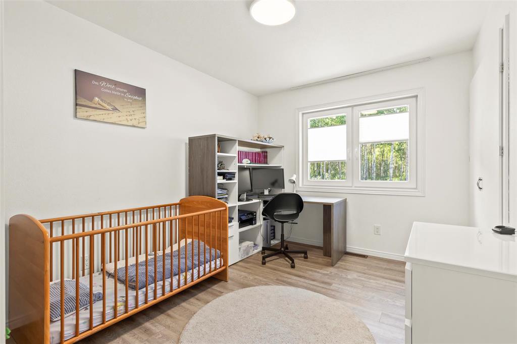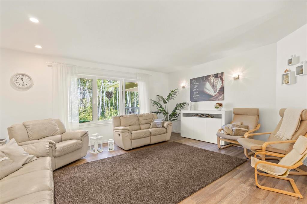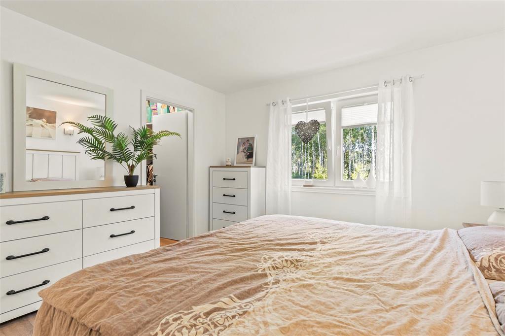 Nestled on 3.87 acres of mature trees on quiet bay! This private country retreat offers 1706 square feet on the main floor plus a fully finished basement. With a total of 8 bedrooms and 3 bathrooms. Perfectly suited for large families or multi-generational living. The main level features laminate flooring throughout, kitchen with eating bar & walk-in pantry, a dining area big enough for the whole family overlooking 14x14 covered composite deck. Primary bedroom with walk-in closet, two additional bedrooms and 4 piece bathroom, and a spacious mudroom and laundry room with a convenient 3 piece bathroom off the garage. Downstairs WITH INFLOOR HEAT enjoy a cozy family room with wood-burning fireplace, 5 piece bathroom & 5 bedrooms including one with a walk-in closet. Additional living space 12 x 26 in third stall of garage adds its own heat/cooling, kitchen, dining area, bedroom, and 3 piece bathroom perfect for elderly parent. Outdoor living shines with a covered composite deck, above-ground pool, surrounded by towering trees, large garden with storage shed, and insulated 26x28 double garage with oversized garage doors. Efficient exterior walls with added foam insulation on exterior and acrylic stucco.