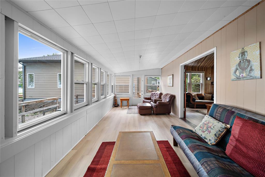 //Open House Sunday, Sept 28, 1-2:30 pm// Just price reduced!! Rare and affordable lakefront living on the highly sought-after Matlock Bay. This charming three-season cottage offers 1,075 sq. ft. with two spacious bedrooms and a full bathroom. Perched on a private, treed lot with a gravel driveway and plenty of parking, this property showcases some of the best views on the lake, overlooking Matlock Beach while being naturally sheltered from strong winds. Inside, you’ll find vaulted ceilings, updated PVC windows, and durable LVP flooring in the sunroom, kitchen, and main living areas. An artesian well provides a reliable, natural water source. The home comes fully furnished with appliances included, making it move-in ready for your immediate enjoyment. Step outside and enjoy the tranquillity of your own lakefront paradise. Just a short walk to Milne Park and the scenic Matlock pier… Lakefront lots like this are rare. Whether you’re seeking a cozy getaway or a prime location with future potential to build your dream home, this property is an opportunity you won’t want to miss.