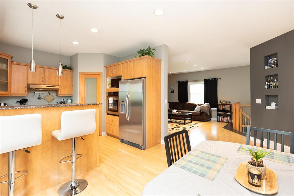 OPEN HOUSE THURS. OCT 9, 6-8pm// Beautiful country property in a desired neighborhood! This 4-Bedroom 2-Bath home is tucked away in a quiet bay just off Kokomo Road South. Step into a spacious living room, a cozy kitchen featuring granite countertops, built in wall oven and sleek glass cooktop. The dining room is located right off the kitchen with patio door opening onto a two-tiered deck. The main floor offers a full 4pc main bath, a spare bedroom and a primary bedroom complete with its own 3pc ensuite. The basement hosts a warm and inviting family room with a wood burning fireplace-perfect for cold winter evenings-plus two additional bedrooms and a 3pc bath. Recent upgrades include: painted stucco (2025), front and back deck painted (2025), microwave (2025), Valley Fiber (2025), Explore Fiber (2024), water softener (2022), HWT (2022), and most of the house recently painted. This well-treed lot provides privacy and plenty of outdoor fun with a playhouse and zipline tucked away at the back of the property. Zipline and structure sold as is.