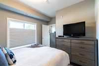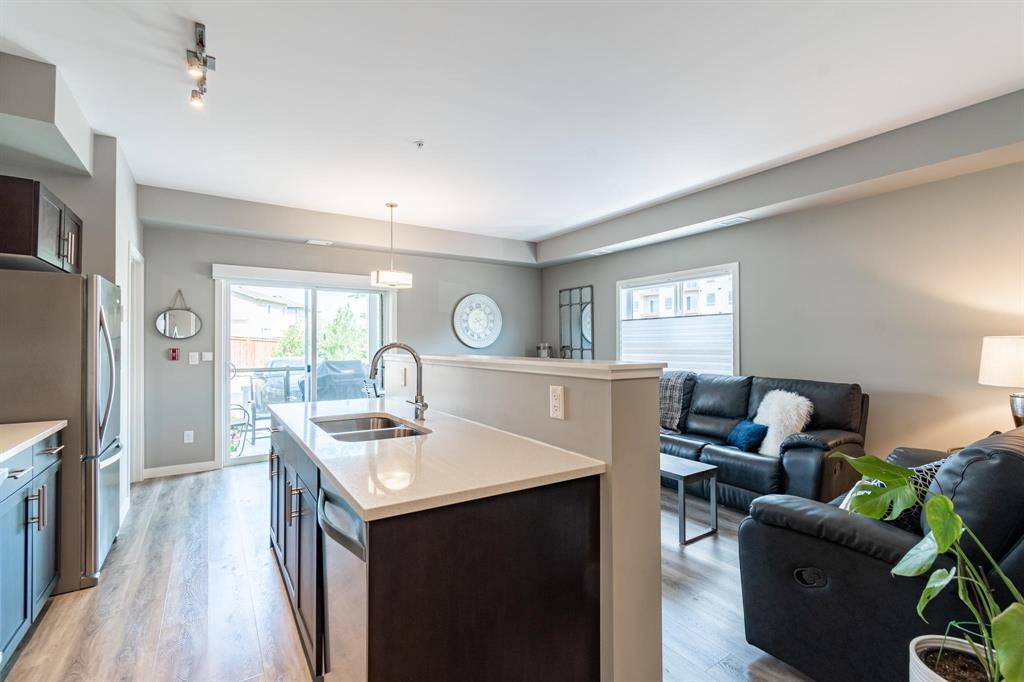 NEW PRICE!! | Casa Fiorentino | Welcome to this bright and beautiful main floor corner unit at 65 Fiorentino Street in a well-managed, pet-friendly building. Offering 912 sqft of stylish living space, this 2 bed, 2 bath condo is perfect for first time buyers, downsizers, or people seeking a low-maintenance lifestyle in a convenient location. The open concept layout features upgraded vinyl plank flooring, large windows for plenty of natural light, a modern kitchen with upgraded quartz countertops & stainless steel appliances. The spacious primary suite includes a walk-in closet and ensuite while the 2nd bed and full bath provide flexible space for guests, a home office or hobbies. Enjoy the ease of in-suite laundry, a patio, and 2 dedicated parking stalls. Condo fees are under $400/month, making it an affordable option with great value. Located close to KP Mall, Costco, Kilcona Dog Park, schools, restaurants & transit routes. You’ll appreciate the accessibility and quiet community feel. This pet-friendly condo offers the perfect balance of comfort and convenience with professional management and minimal upkeep. Book your private showing today!