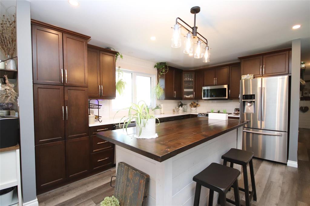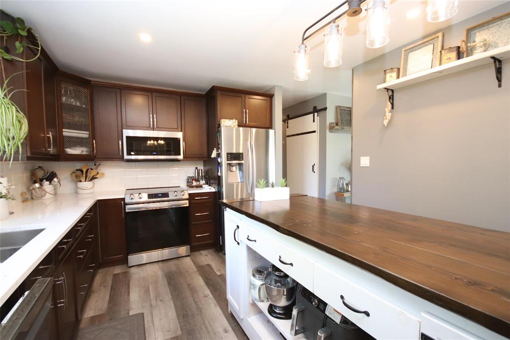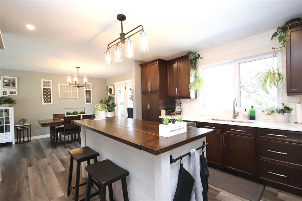 Welcome Home to this Stunning 1300sq.ft. Home with a Finished Basement! A Backyard Oasis awaits the Buyer,a 2 Level Deck with Gazebo included has room for a BBQ,Table & Entertaining Space! Friends will Love coming over for Snacks and Refreshments in the Gazebo! Share Memories around the Bonfire-steps away from the Deck! Beautiful Yard-Perennials,Lush Lawn,2 Handy Garden Sheds + SO MUCH ROOM fits a Play Structure & Trampoline! Modern & Stylish Updates to the Home in Recent Years! Luxury Vinyl Plank Flooring in the Living Rm,Dining Rm,Kitchen & Hallway compliment the Paint Tones,Trim & Light Fixtures! Great Feature Wall too! Upgraded Kitchen Features Kitchen Craft Cabinetry,Quartz Countertop,Custom Island,Subway Tile Backsplash,Undermount Sink,Garburator,Blt. In Dishwasher,OVR Microwave & Appliances! Ample Space in the Dining Area-Convenient Garden Door leads to the Decks! Relax in the Huge Primary Bdrm-fits a King Size Bed-2-pce Ensuite as well! Tasteful Renos to the Ensuite,Main & Downstairs Bath! Fully Finished Basement Complete w/ Rec.Rm,Fireplace,Den,Laundry & Storage! C/A & C/V! New Basement Windows to be installed in Fall 2025(not Laundry rm).Att. Heated Dbl Garage! By School Bus Stop & Daycare!