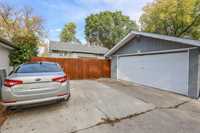 Step outside to a private fenced yard with a charming covered patio — perfect for summer evenings and gatherings. The double detached insulated garage with workshop space offers plenty of room for storage, parking, or projects.