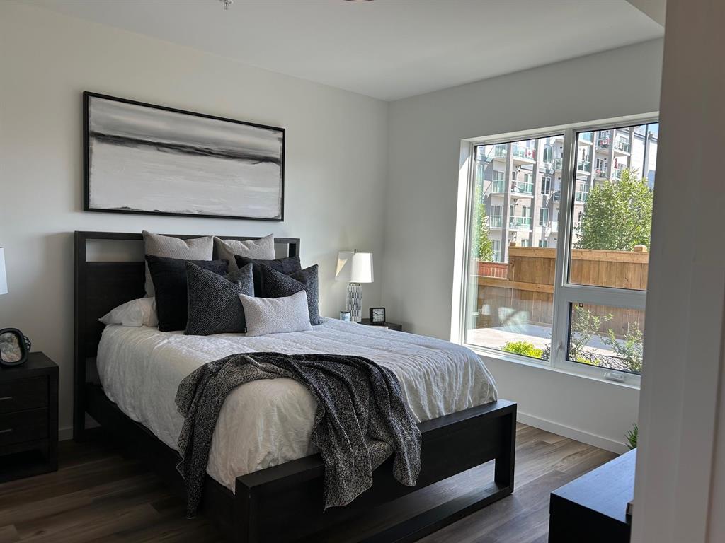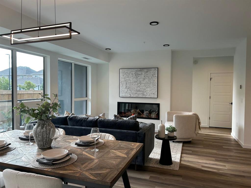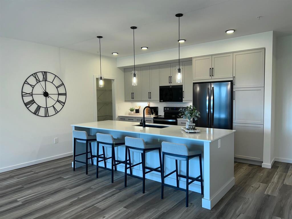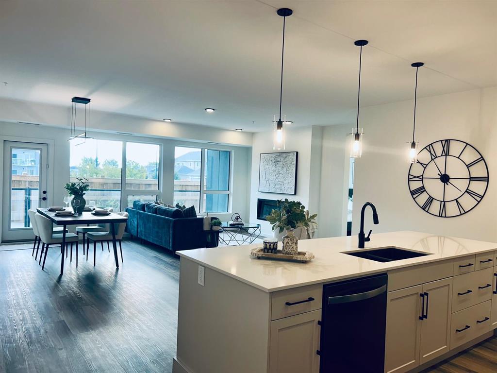 **THIS UNIT HAS A PENDING OFFER ON IT** We are down to our last two units! Brand new with warranty. The only apartment style condominium building for sale in Sage Creek! This brilliantly laid out floor plan is popular with downsizers coming from a large home because it has all the comforts of home such as, large balcony, walk-in pantry, linen closet, fireplace, luxury vinyl plank flooring throughout plus, a primary ensuite with double sinks and large walk-in closet. The magnificent kitchen has upgraded KitchenCraft cabinets in Satin Day Break, a white hexagon backsplash, large quartz island, black SS appliances and black hardware throughout. This corner units large windows let in loads of natural sunlight to the spacious open concept living/dining area. Feeling social? Owners can enjoy a game of pool, watch a sporting event with neighbors, host a family event or, just enjoy a good book in main floor owners lounge. Sage Village is located across the street from numerous shops, restaurants, medical professionals, and all the other amenities you'll need. One underground is parking spot included and two pets are welcome. Showing by appointment.