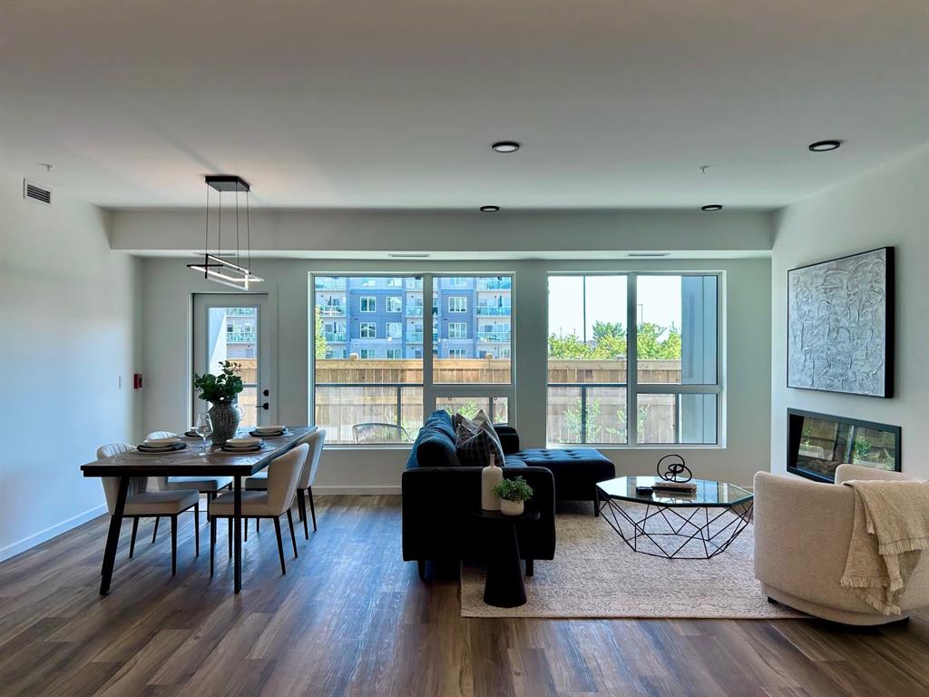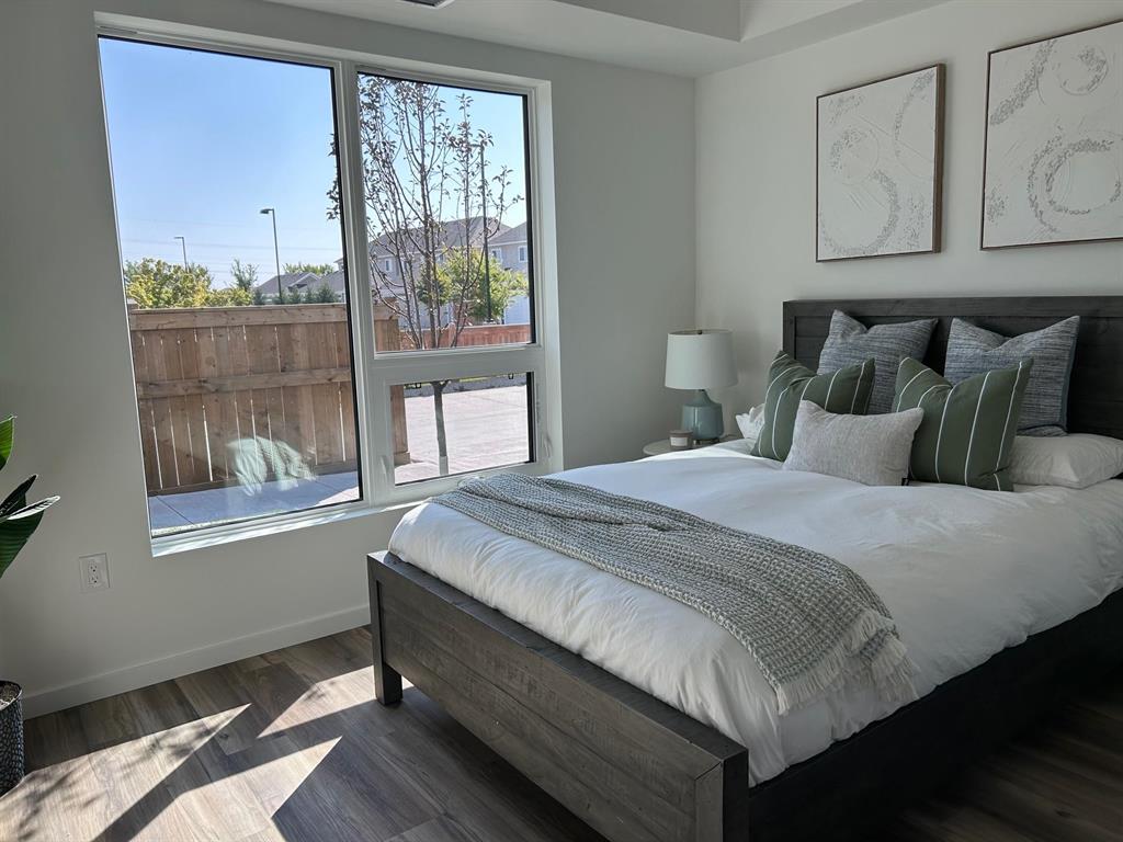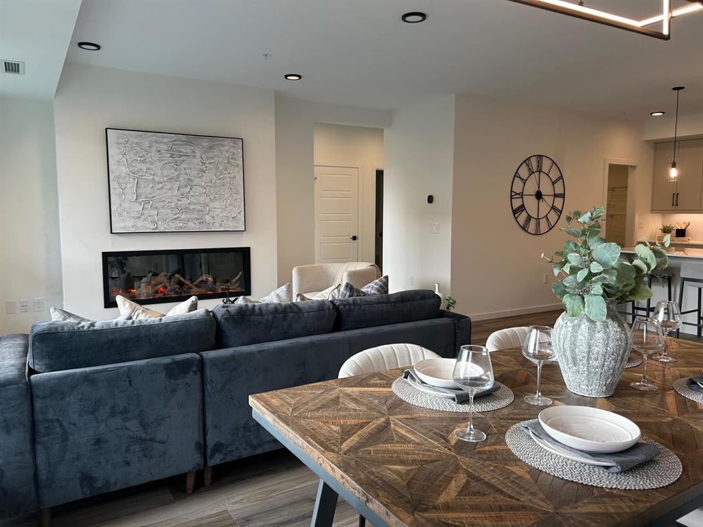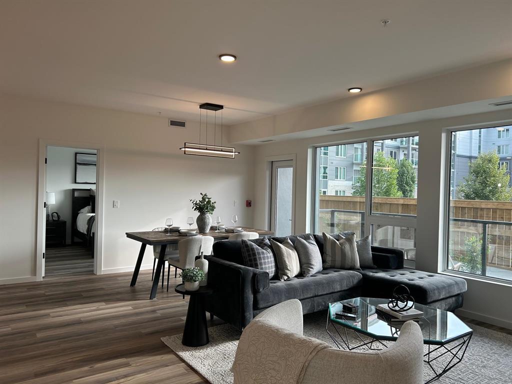**THIS UNIT HAS A PENDING OFFER ON IT** We are down to our last two units! Brand new with warranty. The only apartment style condominium building for sale in Sage Creek! This brilliantly laid out floor plan is popular with downsizers coming from a large home because it has all the comforts of home such as, large balcony, walk-in pantry, linen closet, fireplace, luxury vinyl plank flooring throughout plus, a primary ensuite with double sinks and large walk-in closet. The magnificent kitchen has upgraded KitchenCraft cabinets in Satin Day Break, a white hexagon backsplash, large quartz island, black SS appliances and black hardware throughout. This corner units large windows let in loads of natural sunlight to the spacious open concept living/dining area. Feeling social? Owners can enjoy a game of pool, watch a sporting event with neighbors, host a family event or, just enjoy a good book in main floor owners lounge. Sage Village is located across the street from numerous shops, restaurants, medical professionals, and all the other amenities you'll need. One underground is parking spot included and two pets are welcome. Showing by appointment.