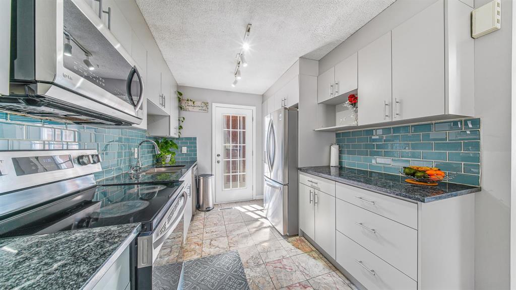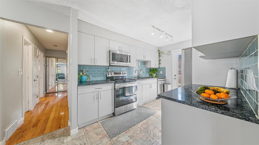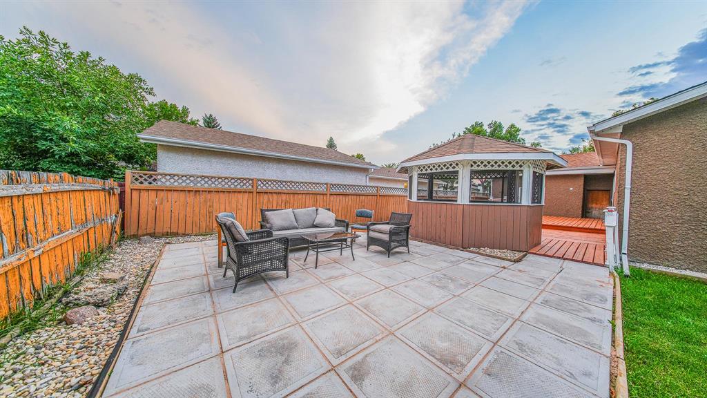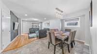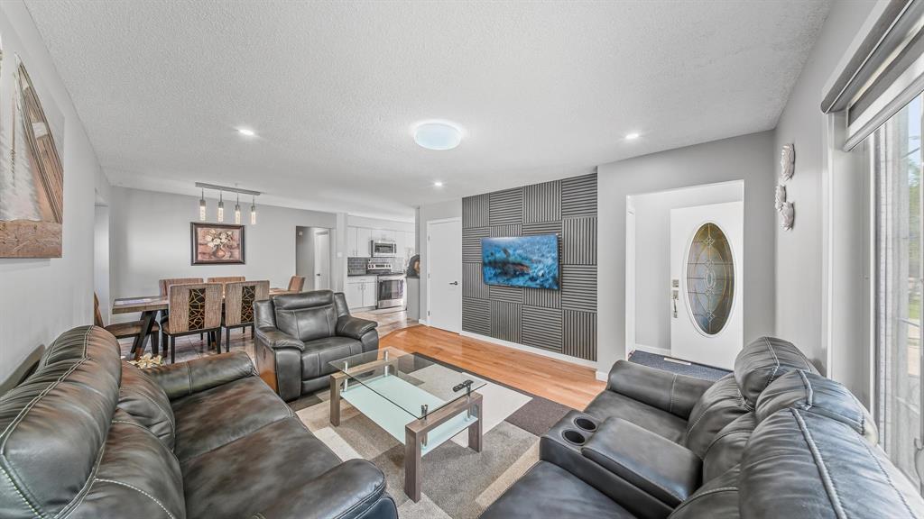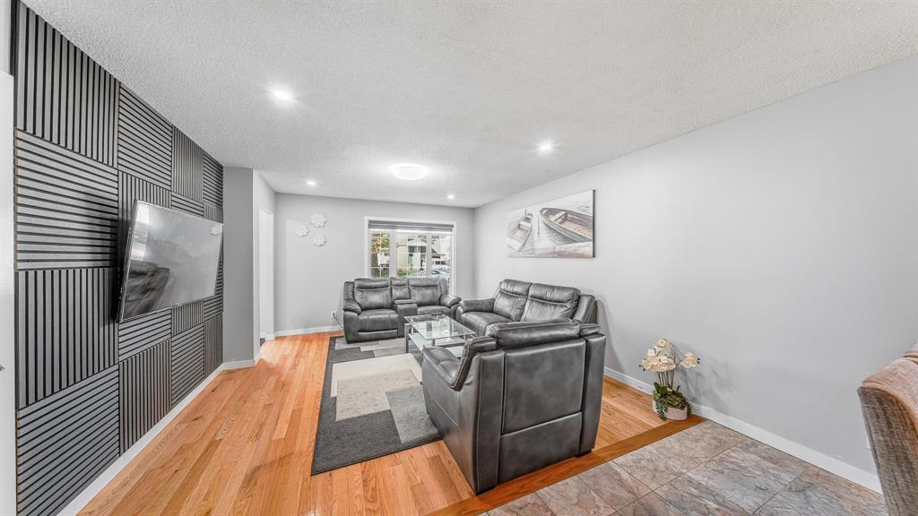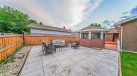 Offer as received. Beautifully renovated bungalow in the heart of Maples featuring a double garage, wide driveway, and charming curb appeal. Step into a welcoming foyer leading to a bright living area with large windows, entertainment area and pots lights, followed by a stylish kitchen with tiled flooring, granite countertops, updated cabinets, and stainless steel appliances. A cozy dining area sits conveniently beside the kitchen. The main floor offers a spacious primary bedroom, two additional well-sized bedrooms, and a full bath. The fully finished basement, with direct access from the garage, includes a large rec room, one bedroom, a den, a full bath and ample storage. Furnance and Water tang changed couple years ago. Enjoy the professionally landscaped backyard complete with a patio and sunroom—perfect for relaxing or entertaining. There are exterior pot lights on front and side of the house. Located in a family-friendly neighbourhood with walking-distance access to bus stops, schools, shopping, and all essential amenities, this home is move-in ready and won't last long!