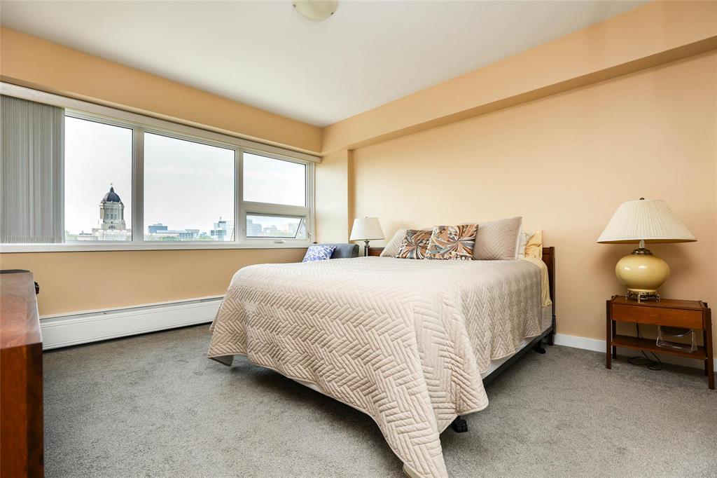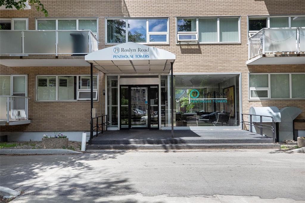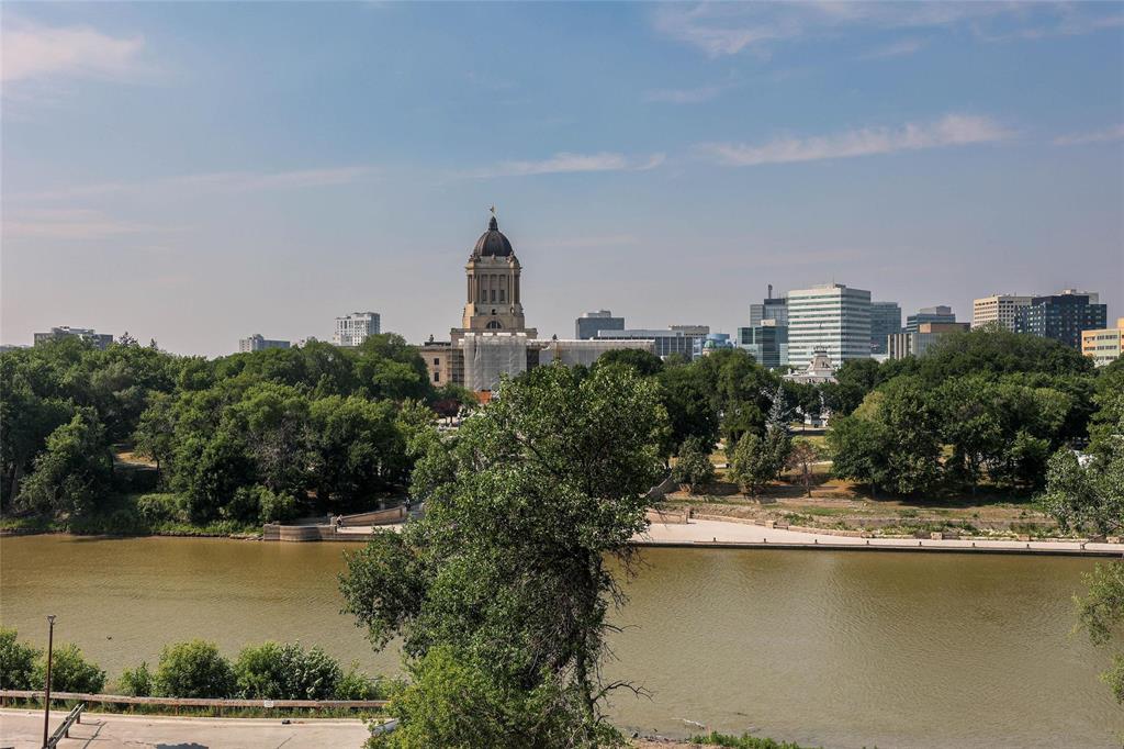 Showings start Sept 24 after 2pm, offers anytime. Enjoy stunning views of the Assiniboine River and the Golden Boy from this lovely 2 bedroom, 2 bathroom unit (one of the few units of this size to offer an ensuite!). Whether from your primary bedroom, large sunny living room, spacious dining area or your lovely balcony, every season captivates. This end unit offers updated kitchen and bathrooms and an abundance of windows, all with gorgeous sight lines. From watching the leaves turn golden in the autumn to the beauty of snow falling and ice skaters on the winter river trail, this iconic view will never disappoint. Spring and summer restore you with a lush green canopy of trees framing the river and boat life cruising by. Tucked away on Roslyn Road yet in close proximity to all amenities in one of Winnipeg's most walkable neighbourhoods - this location can't be beat. The building offers great community and the neighbourhood is rich with a diverse array of restaurants, live music, eclectic shops and more. The unit comes with parking, but with easy access to downtown, The Forks, parks, walking/cycling trails and more, you may find yourself driving less and less.