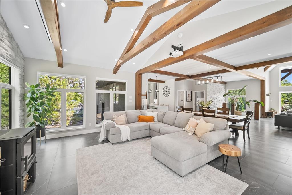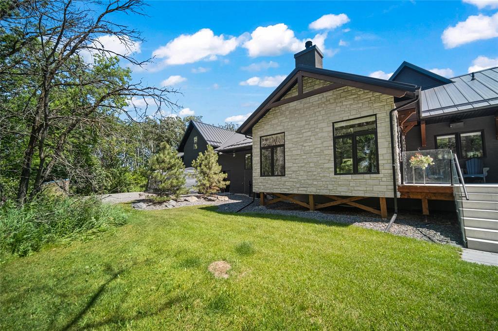Experience luxury living in this stunning 2736 sq ft executive bungalow, perfectly nestled on a beautifully treed acreage just minutes from local amenities. Built in 2021, this exceptional home offers the perfect blend of craftsmanship, comfort, and modern convenience. Featuring 6 spacious bedrooms and 4 bathrooms, there’s room here for the whole family — and then some. Step inside to soaring ceilings, exposed timber beams, and expansive windows that flood the home with natural light while framing serene views of nature. The open-concept living space is ideal for entertaining, complete with a chef-inspired kitchen, elegant dining area, and inviting great room centered around a gorgeous feature fireplace. The primary suite offers a peaceful retreat with a spa-like ensuite and generous walk-in closet. A fully developed lower level provides even more living space with additional bedrooms, bathrooms, and room for recreation or hobbies. Outside, the private, park-like setting is a true escape, with mature trees, manicured grounds, and ample space for outdoor enjoyment. This is a rare opportunity to enjoy acreage living without gravel & sacrificing proximity to schools, shopping, and everyday conveniences.