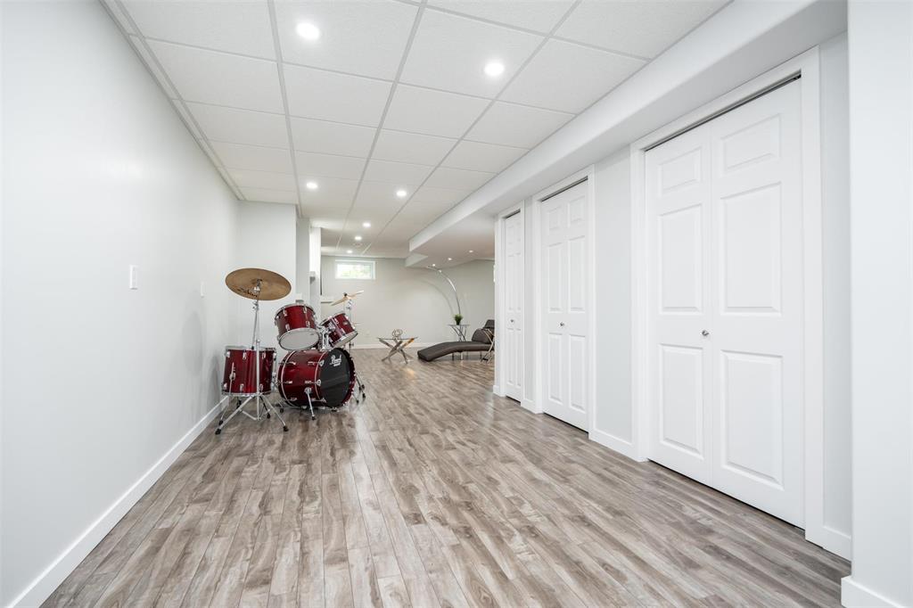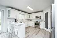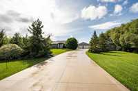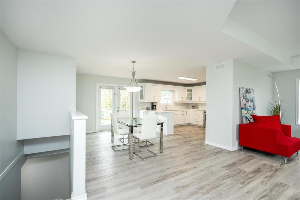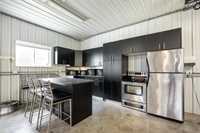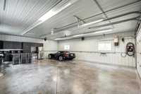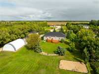 Welcome to this beautifully renovated 5 bedroom home set on a landscaped 2.6-acre lot. The main level features an open layout w/luxury plank floors, stylish kitchen w/white maple cabinetry, stunning quartz counters, tile backsplash + upgraded appliances. The primary suite includes hardwood floors + a private ensuite, while 2 additional bedrooms and a fully updated main bath complete the level. The lower level boasts raised ceilings, laminate floors, pot lights, custom entertainment wall w/fireplace + surround sound, 2 bedrooms & a 3-piece bath. Steel beam construction provides a spacious, open span design, while thoughtful upgrades like in-floor heat lines, R10 insulation + triple pane windows ensure lasting comfort. Enjoy a landscaped front yard w/concrete edging, a two-tier deck w/black spindles, a quonset for storage + parking for recreational vehicles. The oversized garage is complemented by an incredible detached heated shop with space for up to six vehicles, hot and cold water taps, compressor lines, central vac, 220 power, and even a kitchen setup. Recent updates include shingles on both the home + garages (2023), paved driveway, iron filtration system and more!