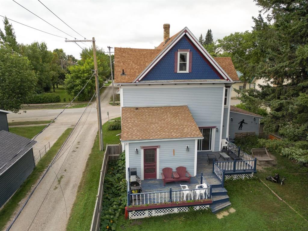 Updated historic century home located in the heart of Manitou! This 1,900 sq ft home features original hardwood flooring, stained glass windows, intricate woodwork, and more. On the first floor, you will find a spacious living room with French doors leading you into the grand dining room. Also on the main floor is the white painted kitchen with all appliances and a coffee bar included. A 2-piece bath completes the first floor. The winding wooden staircase brings you to the second floor, which features 3 good sized bedrooms as well as a 4 piece bath, including a clawfoot tub. The third floor is made up of a large loft bedroom, ideal for a rec space or primary bedroom. The 3/4 basement offers lots of storage, a laundry area, a 3 pc bath, as well as a woodstove as additional heating source. The fully fenced backyard has a nice deck perfect for hosting and a 16' x 8' garden shed. Contact your Realtor now to book a showing of this historic property!