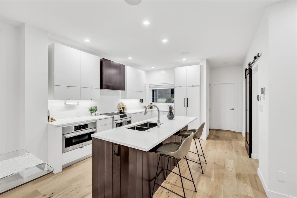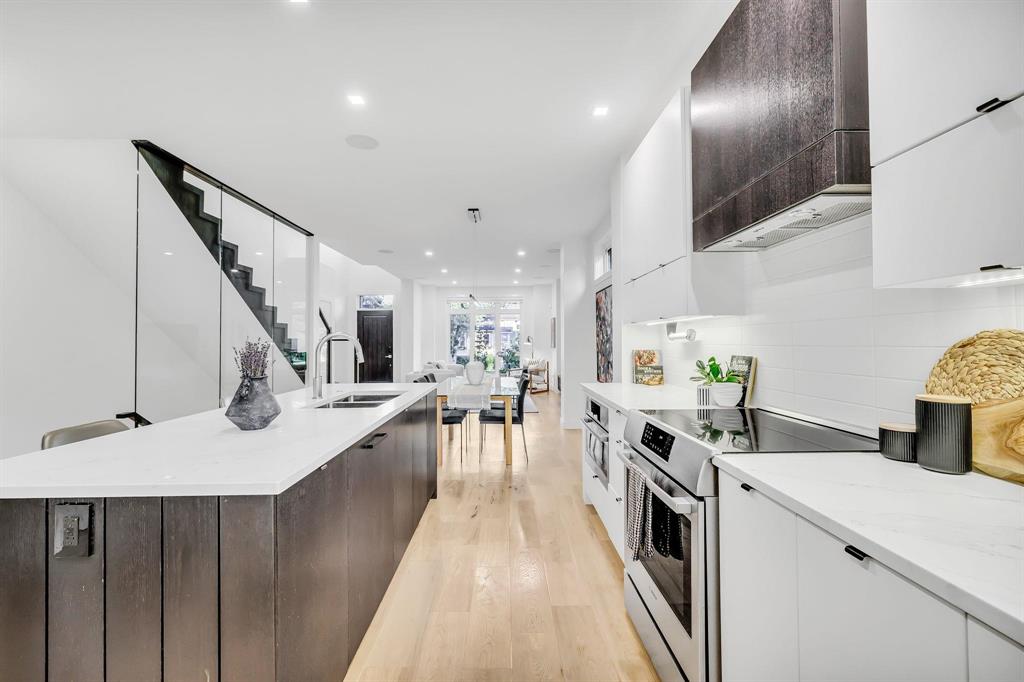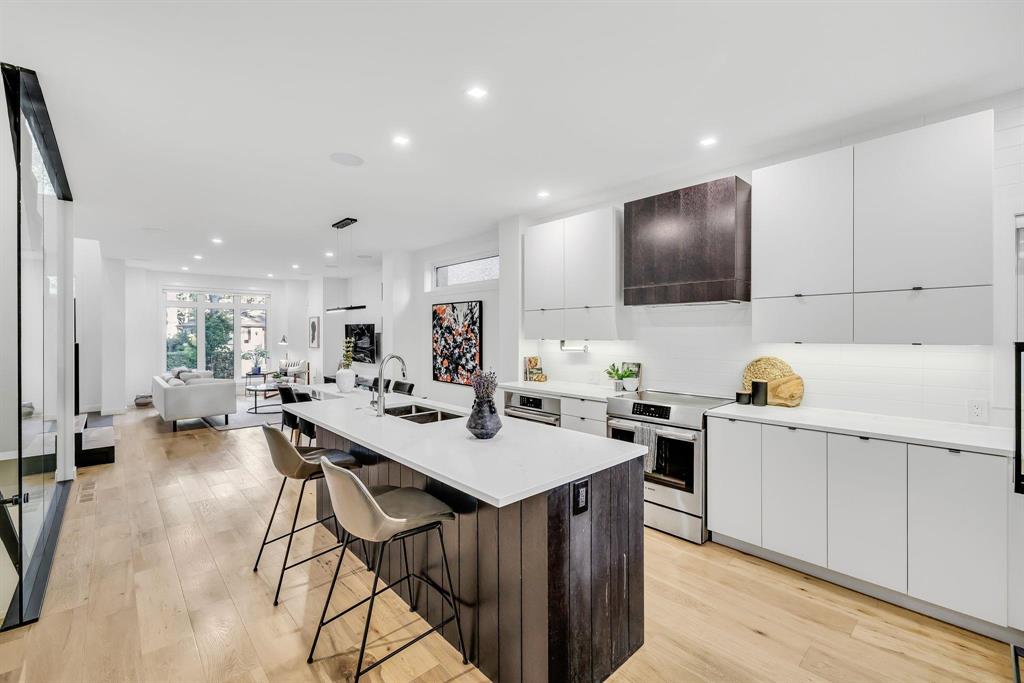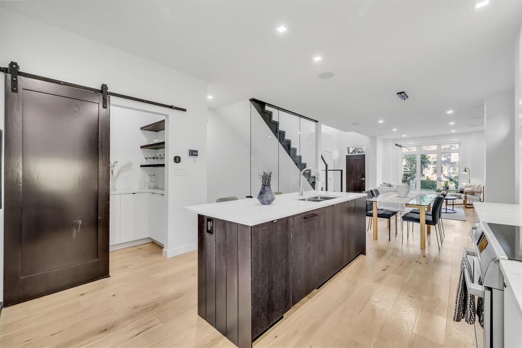 Exceptional home showcasing custom millwork and thoughtful details throughout. Bright & airy with wide plank engineered white oak hardwoods, large windows & custom blinds, the interior offers both warmth & sophistication. The GR features wall-to-wall media cabinetry, floating shelves & ceiling speakers, seamlessly connecting to the dining space that easily accommodates 6–8 guests. The chef’s kitchen is a showstopper with soft-close cabinetry, high-end appliances, quartz counters, organizers & a family-sized island w/double sink & breakfast bar, complemented by a convenient butler’s pantry. A guest bath & spacious mudroom lead to a covered deck & AT/2. A custom glass staircase brings you to the UL, includes 3 bedrooms, full bath & laundry. The private primary retreat offers an 18' x 8' balcony, a spa-inspired 5-piece ensuite w/heated floors, steam shower & custom WICC. The finished basement extends your living space with a rec room, 4th bedroom & full bath. ICF foundation on piles. Control4 home automation system. This beautiful home is steps to Wellington Crescent & walking distance to Academy’s shops & restaurants.