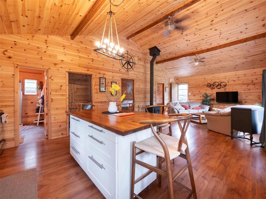 Welcome to Island Beach! This charming 3-bedroom, 1-bathroom cottage is situated in a prime location, right across from the walkway leading to the beach. Upon entering, you'll be greeted by a spacious open-concept living area complemented by pine throughout the cabin that adds a cozy, rustic charm. Stepping outside, you'll be greeted by an expansive, tree-lined backyard. At the front of the cottage, a spacious covered deck extends from the sunroom, offering the perfect spot for relaxation. This setting is ideal for entertaining, with ample space for guests both indoors and out. Spend your evenings around the fire or enjoy sunny days at the beach, which is conveniently located just across the road. Impeccably maintained and ready for new owners to enjoy!