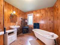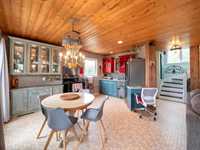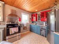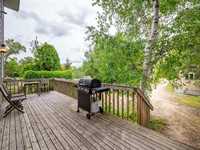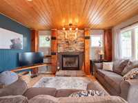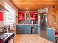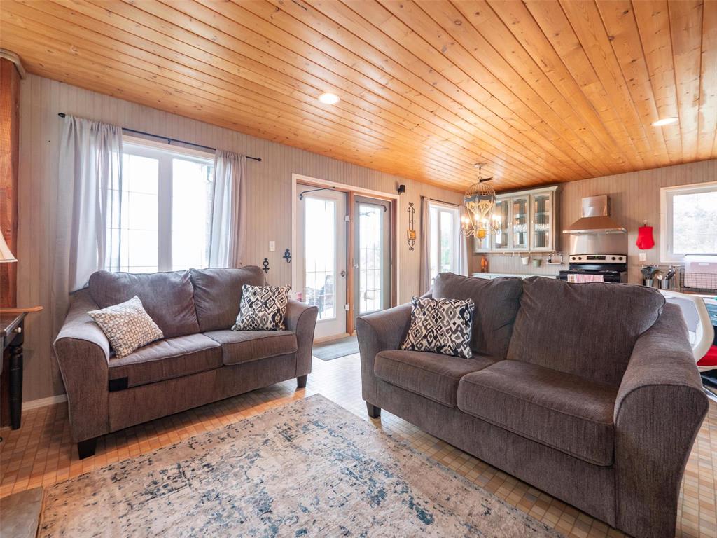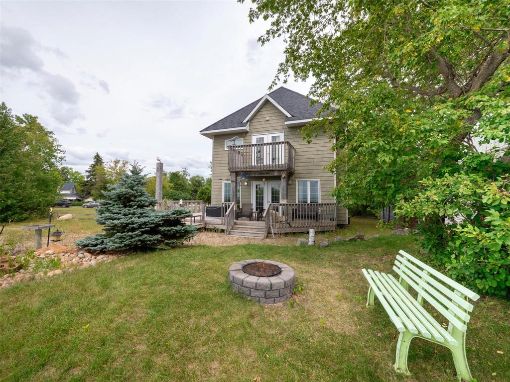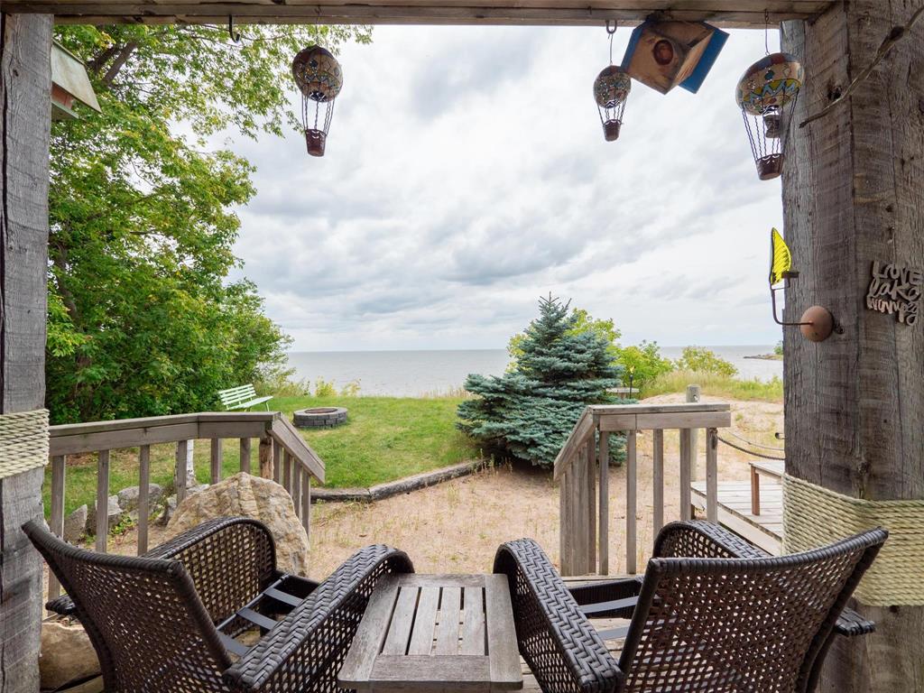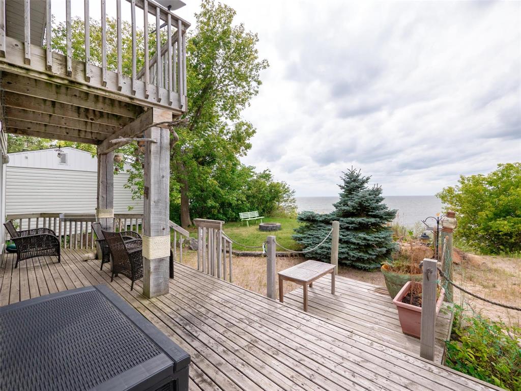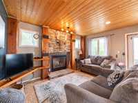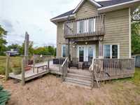 Discover the Allure of Lakeside Living. Experience the charm of this stunning custom-built two-story lakefront home, designed with both comfort and style in mind. Perfect as a year-round retreat or a permanent residence, this home seamlessly combines elegance and functionality. At its heart is an open-concept kitchen and living room, where panoramic lake views create a captivating focal point. The space exudes both warmth and sophistication, enhanced by a gas fireplace that offers a cozy, modern cottage ambiance. With two full bathrooms and a convenient main-floor laundry, every detail has been thoughtfully considered for your convenience. Built to last, the home features durable 50-year shingles, ensuring long-term peace of mind. Every aspect of the design contributes to a perfect blend of comfort and charm. Step outside to find a beautifully landscaped yard and sandy beach with picturesque waterfront views. Complete with a bunkhouse and optional trailer included for additional space and guests. Own a piece of paradise!