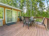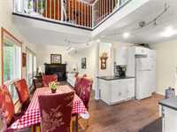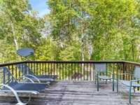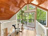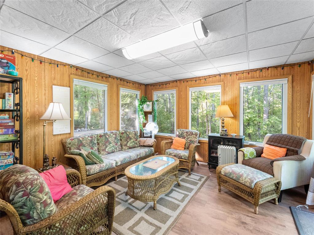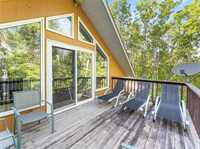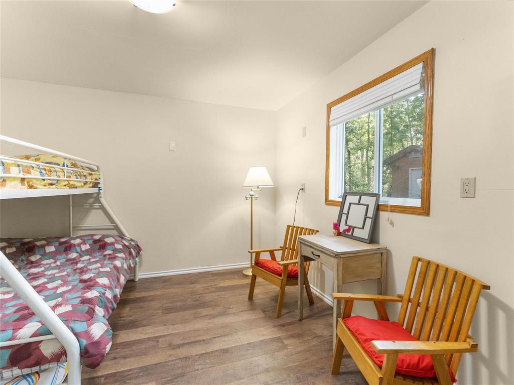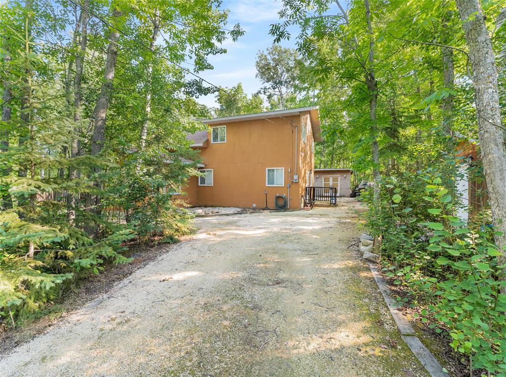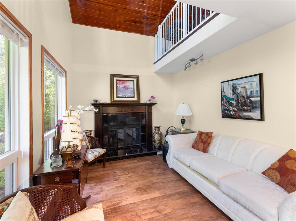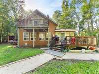 Experience lakefront living at its finest at 43 Tranquil Bay. Set on a .42-acre waterfront lot, this 1,900 sq. ft. residence offers a rare combination of elegance and comfort. With 4 bedrooms and 2 full bathrooms, the home is thoughtfully designed to maximize both space and views. The main floor showcases a grand sunroom with soaring windows and a striking tile-faced wood-burning fireplace. The well thought out open concept layout allows for picturesque views of the yard from the kitchen, dinning room & living room. Upstairs, a stunning loft unlike any other opens to a private balcony overlooking the landscaped yard and fire pit area. A picturesque walking bridge leads directly to the beach, while three generous storage sheds provide ample space for seasonal living. A remarkable property designed for those who value both style and serenity.