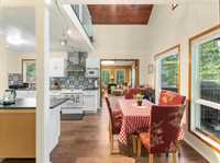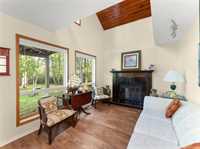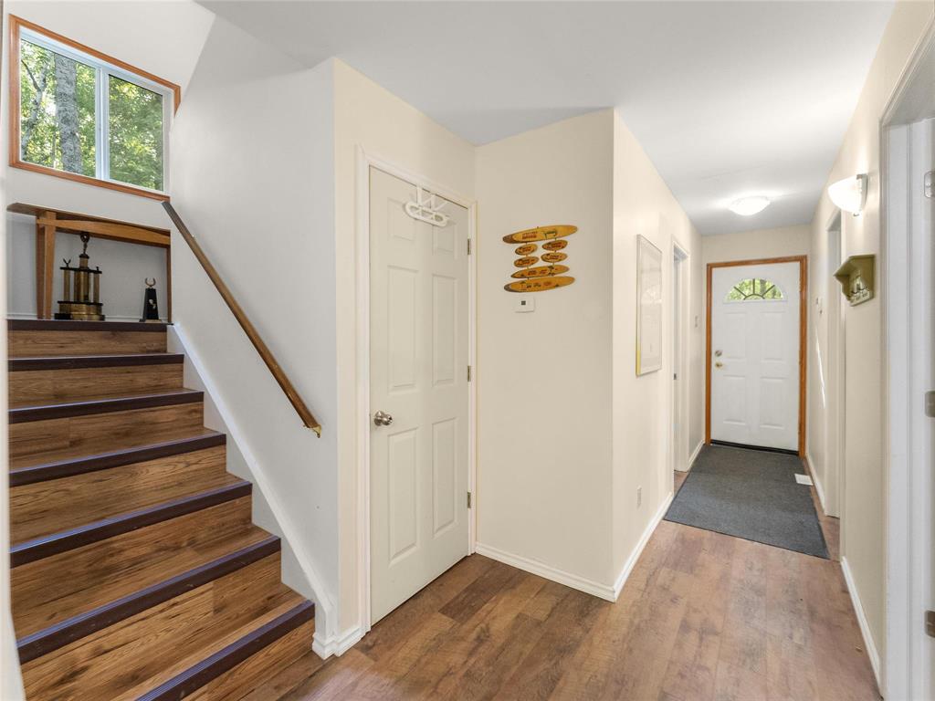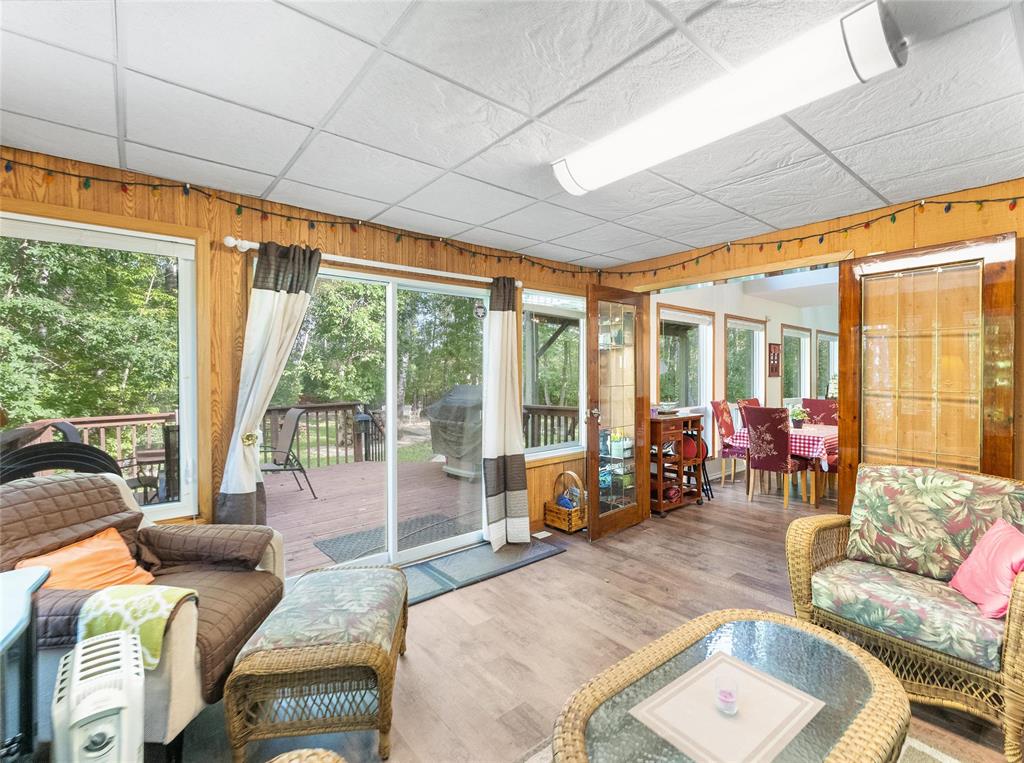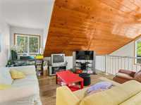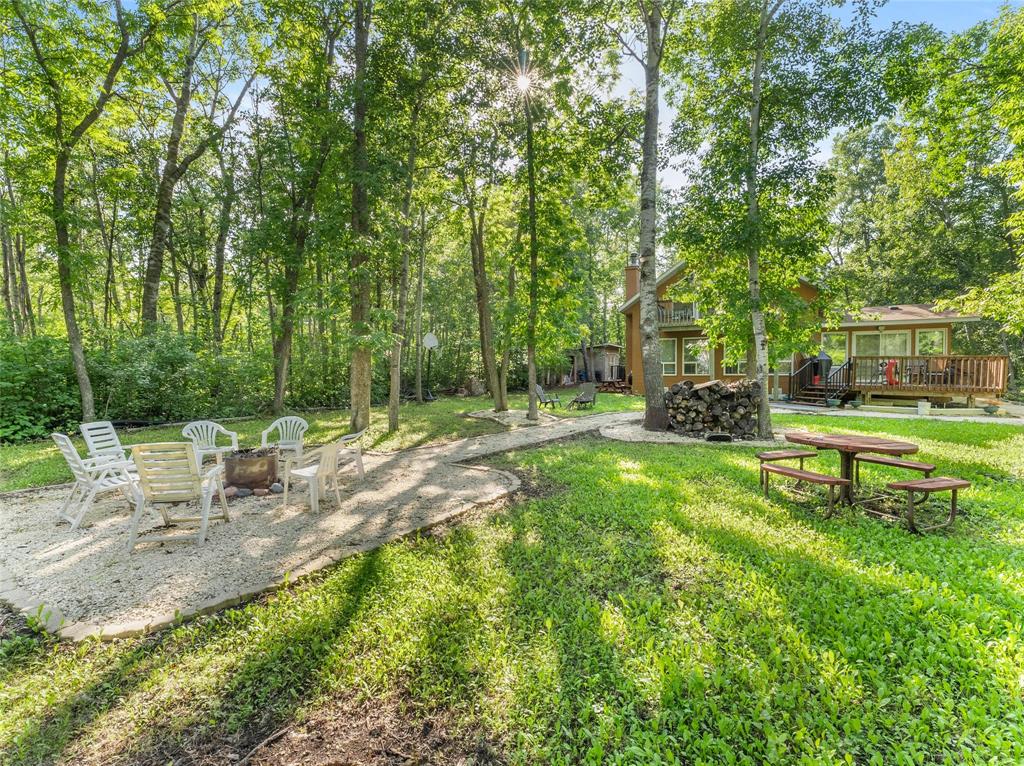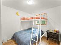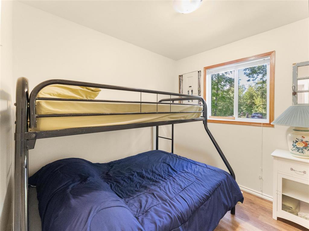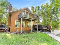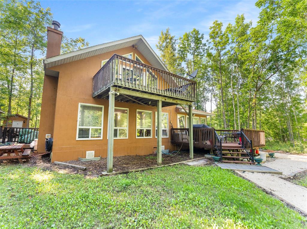 Experience lakefront living at its finest at 43 Tranquil Bay. Set on a .42-acre waterfront lot, this 1,900 sq. ft. residence offers a rare combination of elegance and comfort. With 4 bedrooms and 2 full bathrooms, the home is thoughtfully designed to maximize both space and views. The main floor showcases a grand sunroom with soaring windows and a striking tile-faced wood-burning fireplace. The well thought out open concept layout allows for picturesque views of the yard from the kitchen, dinning room & living room. Upstairs, a stunning loft unlike any other opens to a private balcony overlooking the landscaped yard and fire pit area. A picturesque walking bridge leads directly to the beach, while three generous storage sheds provide ample space for seasonal living. A remarkable property designed for those who value both style and serenity.