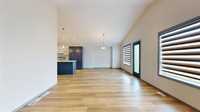 Ss now. Offer reviewed as received. Why build when you can move into this almost new house in Prairie Pointe. This 1557 square feet cabover offers 3 bedrooms, 2 full bath and big windows basement for future development. Main floor features with open concept, designer selected two tone Kitchen cabinet and Stainless-Steel Kitchen appliance to be installed prior to possession. Bright dining room and living room with huge windows and vault ceiling make the space cozy and comfortable. Quartz counter top and upgraded Vinyl Plank flooring throughout. Upgrade bathroom vanity with KOHLER. Two decent bedrooms on main floor with full bath. Over-sized primary bedroom located on the top floor with walk-in closet and three-piece ensuite. East facing lot. APPLIANCES INCLUDED. Call today to book your appointment. QUICK POSSESSION AVALIABLE.