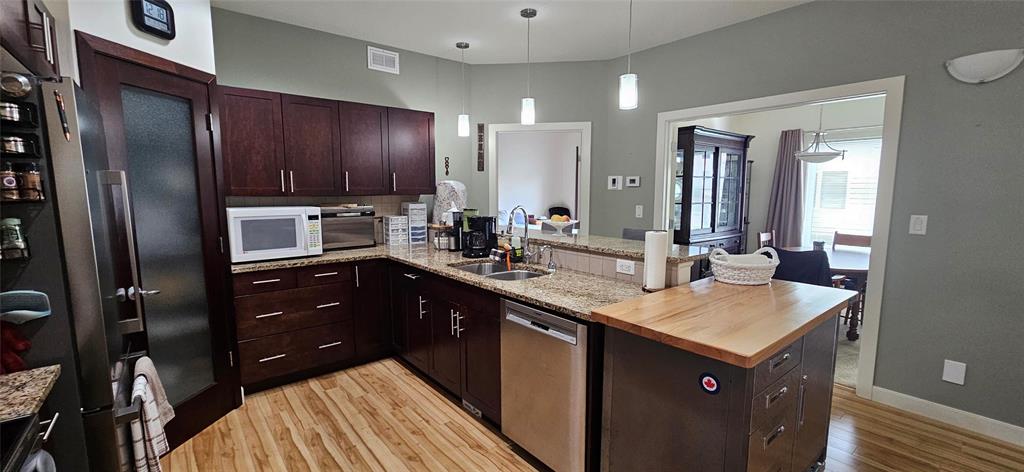 Substantial Price Adjustment!! Offers Anytime! Excellent End Unit, That Shows Extremely Well! Main Floor Features Open Concept Kit/Living Rooms With 9ft Ceilings. Good Sized Front Entry Leads To Large Bright LR, With Patio Door To South Facing 3 Season Sun Room, Gorgeous Kitchen W/Granite Counters, Newer Appliances & Abundance Of Cupboards/Drawers & Storage Space, Including A Walk-In Pantry w/Auto-Lites. 3 BRs, & 2 Bathrooms, Plus Main Floor Laundry. Primary BR Has 2 Sets Of DCC & 3 Piece En-suite , Good Sized 2nd BR (Currently Used As Office Area) & Decent Sized 3rd BR (Currently Used As DR). Lower Level Features, Large L-Shaped RecRm, 4th BR (Window May Not Meet 2025 Egress Code), 3 Piece Bath & Plenty Of Storage & Work Shop Areas. Insulated & Drywalled Double Attached Garage. Home Shows "AAAA". Call Your Agent To Book A Viewing Of This Fine Property!