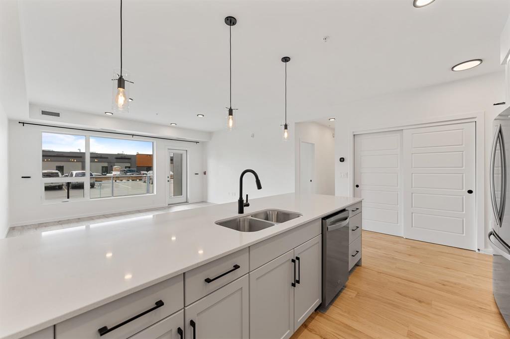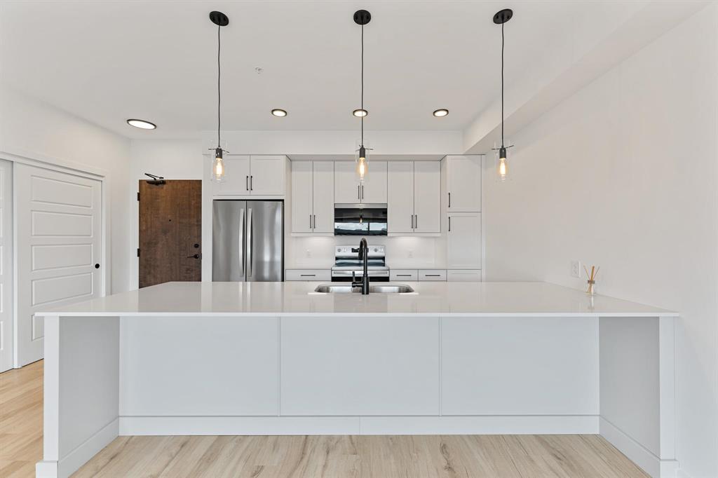 Like new and move-in ready! This beautifully designed 4-month-old main floor condo offers the perfect mix of style, comfort, and convenience. Featuring 2 spacious bedrooms and 2 full bathrooms, the open-concept layout includes durable laminate plank flooring, quartz countertops, and a full appliance package. The bright kitchen flows seamlessly into the living area, with direct access to your private patio—ideal for morning coffee or entertaining. Enjoy the rare benefit of 2 parking spots: one heated indoor stall plus an additional outdoor space. The building offers fantastic amenities including a common lounge with pool table and kitchen area, as well as a fully equipped gym. Pet-friendly and located close to shopping, restaurants, transit, and parks, this condo is perfect for first-time buyers, downsizers, or investors. A modern home in a prime location—don’t miss this opportunity!