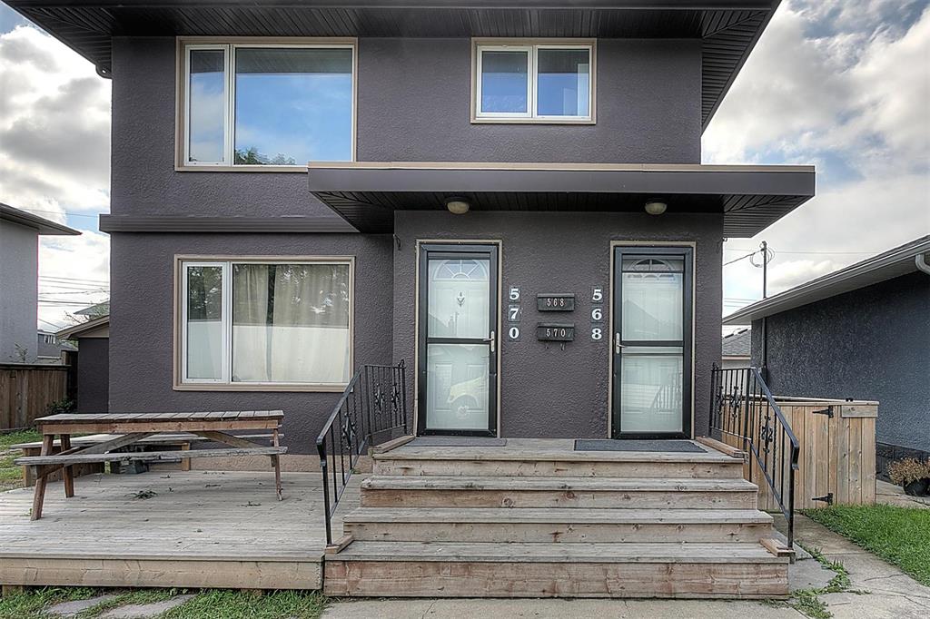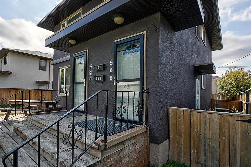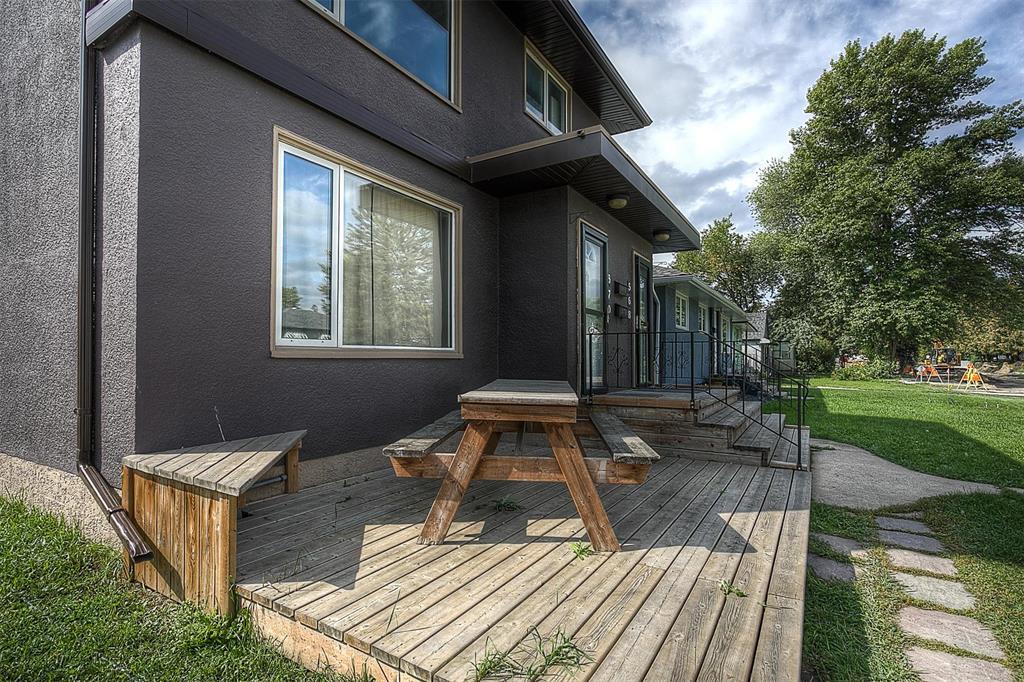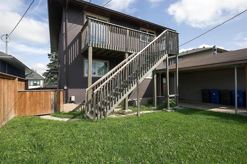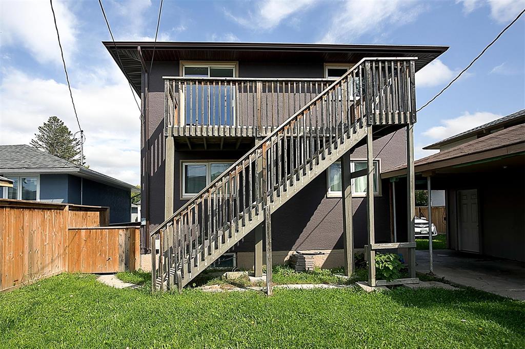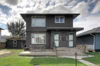 On an exceptionally large lot you'll discover this fabulously appointed duplex you'll be proud to own! Live in one suite and rent the other or rent out both units. Beautiful remodeled oak kitchens, newer bathrooms, newer appliances, tiled, hardwood and carpeted floors are all in prime condition. Each suite has its own laundry and private rec room, while the top floor unit boasts an extra lower level den-office, as well. The upper unit also offers a balcony and stair case which to easily accesses the privacy fence back yard, garage and extra parking. The welcoming deck out front extends your outdoor living enjoyment, and there's parking for 4 vehicles. These are exceptional features in a gentrifying neighbourhood, close to all levels of schooling, community club, grocery stores and city transit. Call now to book your personal showing.