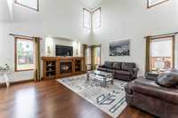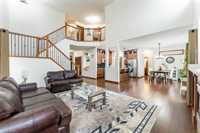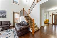 Offers as received - Discover life in the heart of South Pointe with this stunning family home by Foxridge Homes, the luxury division of Qualico. From the moment you arrive, you’ll be impressed by the curb appeal and the convenience of an attached double car garage. The welcoming front porch is perfect for greeting guests or enjoying your morning coffee. Inside, the open-concept main floor seamlessly connects the living room and kitchen—perfect for gatherings and everyday living. Soaring ceilings, custom blinds, and an abundance of natural light highlight the space. The living area showcases a beautiful built-in gas fireplace w/ mantle, a custom entertainment unit, and a built-in audio system. The chef’s kitchen features granite countertops, stainless steel appliances, a pantry, and a spacious island. Main floor laundry, a mudroom, and a powder room add extra functionality. Upstairs, retreat to the primary suite complete w/ a walk-in closet, 4-piece ensuite, and a magnificent covered terrace overlooking the expansive backyard. Two additional large bedrooms and a full bath provide plenty of room for family. This home blends modern luxury with everyday comfort and waiting for your to move in!