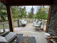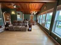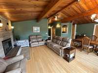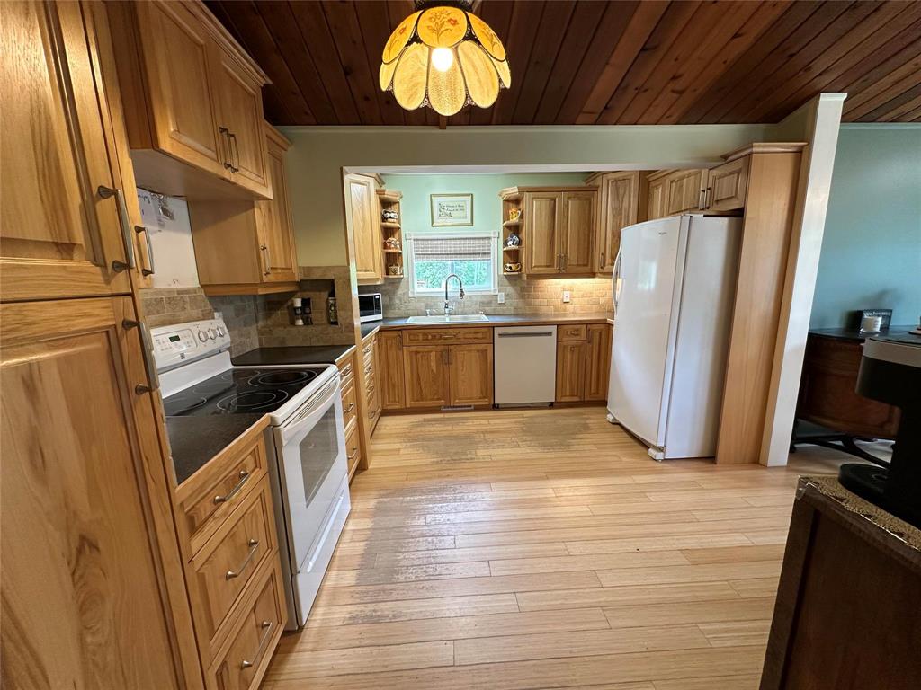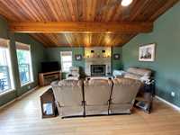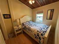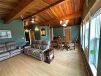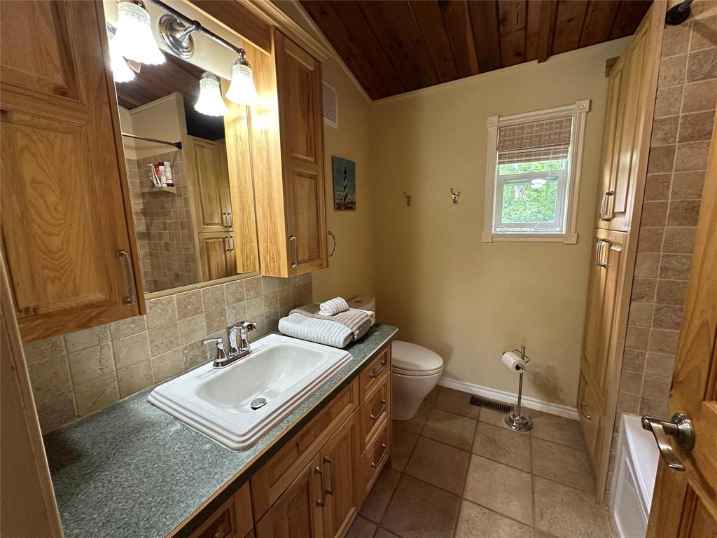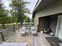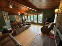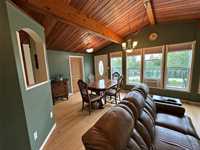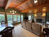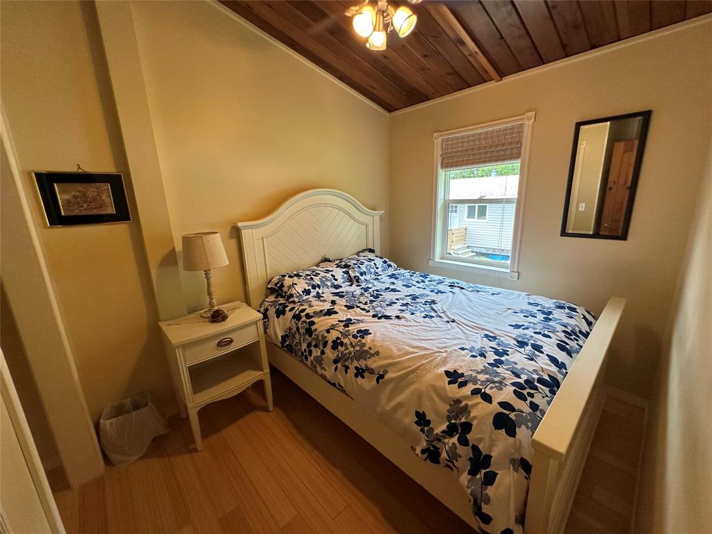 Gorgeous, custom designed, 3 BR, 1.5 Bath, 1365 square foot, YEAR ROUND HOME with too many features to list, including a LAKE VIEW! The fully landscaped yard, with perennial gardens, multi tiered decking and side brick patio is perfect for relaxing and entertaining! Solidly built, on a concrete and piled foundation, this home features interior "safe and sound" insulation for soundproofing, Can Excel Siding, Forced Air Furnace, and newer shingles (2021). This home has a Fantastic open plan that feels spacious, with tons of functional storage, Vaulted Cedar Ceilings, and engineered hardwood floors. A good book beside the Brick fireplace is the perfect way to spend those cooler days. This property is Wheelchair accessible, with a rear exit ramp. Close to the playground and lake access, with a shed for all the toys! Come discover all lake living has to offer!!