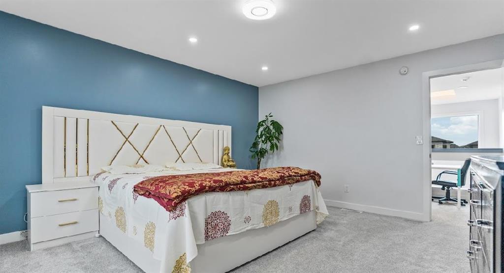 S/S Wednesday, Sept 10th - OTP as received. Stunning original owner home has many upgrades & offers 5 bedrooms plus main floor bedroom and full bath, 4 full baths, a fully finished basement with wet bar & tons of storage & a gorgeous landscaped yard with multi level deck area, perfect for entertaining or relaxing. Enter in to the large foyer with access to over-sized garage, perfectly tucked away to allow work from home with ease. Open to below living room. The eat-in kitchen is spacious with Quartz counter top whole house, kitchen space plus corner pantry, it opens onto to the large family room area with Entertainment unit. Convenient 2nd floor huge laundry with storage. Upstairs is a huge Primary bedroom with walk-in closet & 4pc ensuite plus two more spacious big bedrooms & family bath. The lower level separate entrance to basement offers a large professionally finished rec room area with wet bar, 3 pc bath, bedroom or work out space plus storage. The outside space is equally amazing with gorgeous multi level deck, large landscaped & fenced yard. close to schools, shopping, public transit & Gurdwara Kalgidhar Darbar, with easy access to Route 90. Don’t miss it!