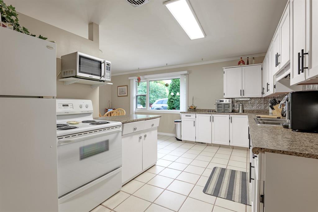 This unique 1496 sq ft bungalow is on a large 60x102 lot with mature trees, detached garage and extra parking space, fenced yard. Located close to schools, parks, community centers, shopping, churches. Inside you will find a very functional floor plan with everything on one level, no stairs to climb, no basement, a spacious kitchen, good counter space and plenty of cabinets. Separate dining area and living room with very large front windows. Down the hall there is a 4 piece bathroom, 2 good size bedrooms with lots of closet space and big windows plus a large Primary bedroom with 2 piece en-suite, large closet and patio doors to the back yard patio and hot tub. This perfect family home has been well maintained with many updates throughout the years such as Alarm system with exterior cameras, PVC 3 pane windows and doors, double foam insulated walls for maximum efficiency, Roof shingles 2020, Electric hot water tank 2023,H.E. furnace with ERV unit 2015, updated bathrooms, Washer/Dryer 2024, laminate floors and much more. Call now.