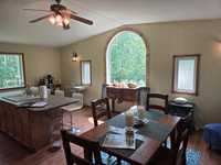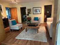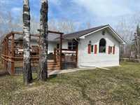 Showings start now offers anytime, beautifully maintained 3 bedroom cottage on 99 X 200 treed lot, short scenic walk to beach area, nicely remodeled open concept Oak kitchen with island, cathedral ceilings, floor to ceiling window for an abundance of light , great entertainment area with huge solid Oak kitchen table & chairs & appliances included , cozy living room & sitting area, newer flooring throughout, freshly painted interior, newer windows, 2 year old metal roof , 7 year old furnace, huge newer deck with all high end patio furniture included, fenced dog run, this cottage was recently lifted, levelled & placed on solid concrete footings, maintenance free exterior, lawn service, this truly is a beautiful cottage that comes fully equipped & furnished & also could be winterized.