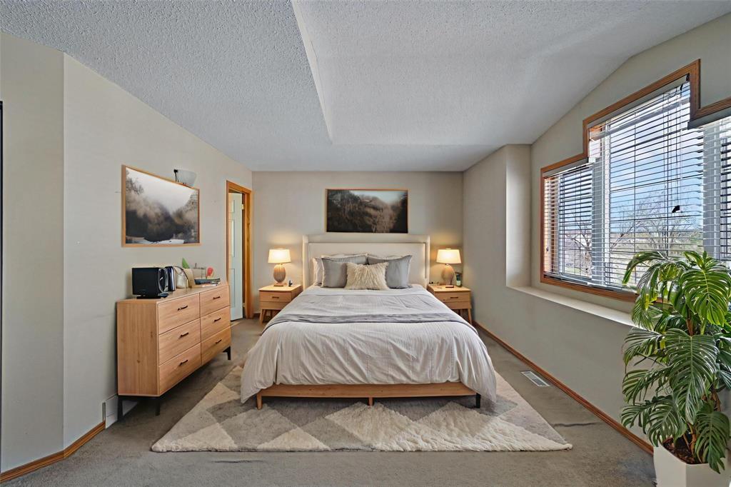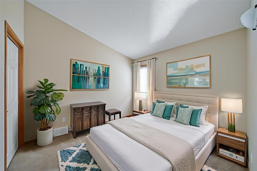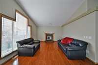 Beautiful Richmond West family home on a quiet street seconds from Kirkbridge Park. Cab-over style with bright open plan, island kitchen, living room with gas fireplace and front family room. Hardwood flooring, soaring vaulted ceilings, two bedrooms on the main, main floor laundry and a 4 piece bathroom. Upper level features the large primary suite with walk in closet and 4 piece ensuite bathroom. Lower level of the home is finished with a huge rec room, roughed in bathroom, 4th bedroom and lots of storage. High efficiency furnace(2021), central air(2021), newer roof(2021) and hot water tank(2024). Attached double garage, low maintenance front landscaping and flower beds/gardens in the back, deck and patio. Close to all levels of schools, the U of M, transit, shopping and restaurants. Don't miss this opportunity to get into the market in a lovely family home at a reasonable price point. Measurements are approximate and +/- jogs. Some photos have been virtually staged.
