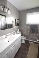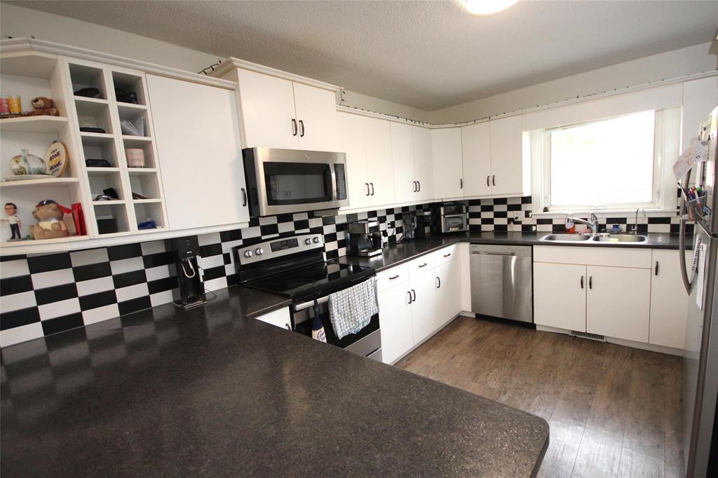 Perfect for raising a family, this 1,208 sq. ft. 5 bdrm, 2 bath home with double det. garage has plenty to offer. Striking kitchen w/ black & white back splash has numerous cabinets and a peninsula.Open concept kitchen/dining/living room and neutral colour tones make the area feel bright & spacious.The attractive fireplace adds a classic but cozy touch to the living room. 4 pc main bath was renovated in 2018 in addition to new vinyl plank flooring throughout the main level as well as window upgrades. 3 bdrms complete this level. The basement, also finished in 2018, provides a great space for family and friends to gather for movies or game nights and a second fireplace warms up this space. 2 additional bedrms, a 3 pc. bath w/ walk-in shower, and a furnace/laundry/pantry room make up the lower level. Treat yourself to some relaxation in the bonus built-in sauna! A large, fenced in yard provides privacy and room for outdoor activities or perhaps some quiet time on the deck. C/A, appliances included.