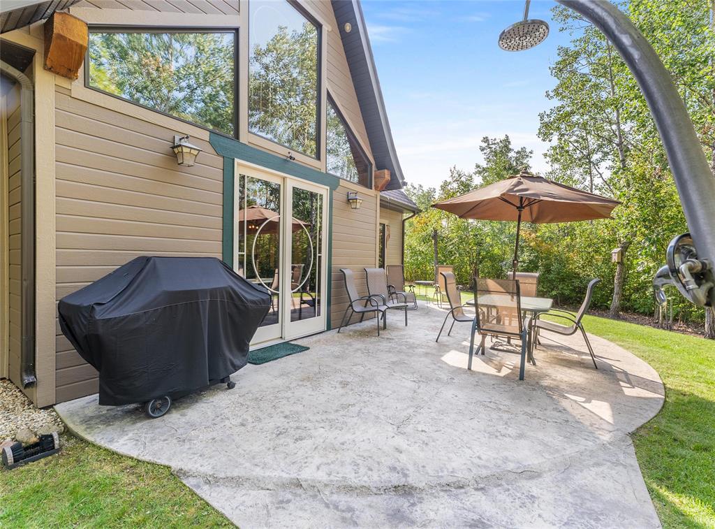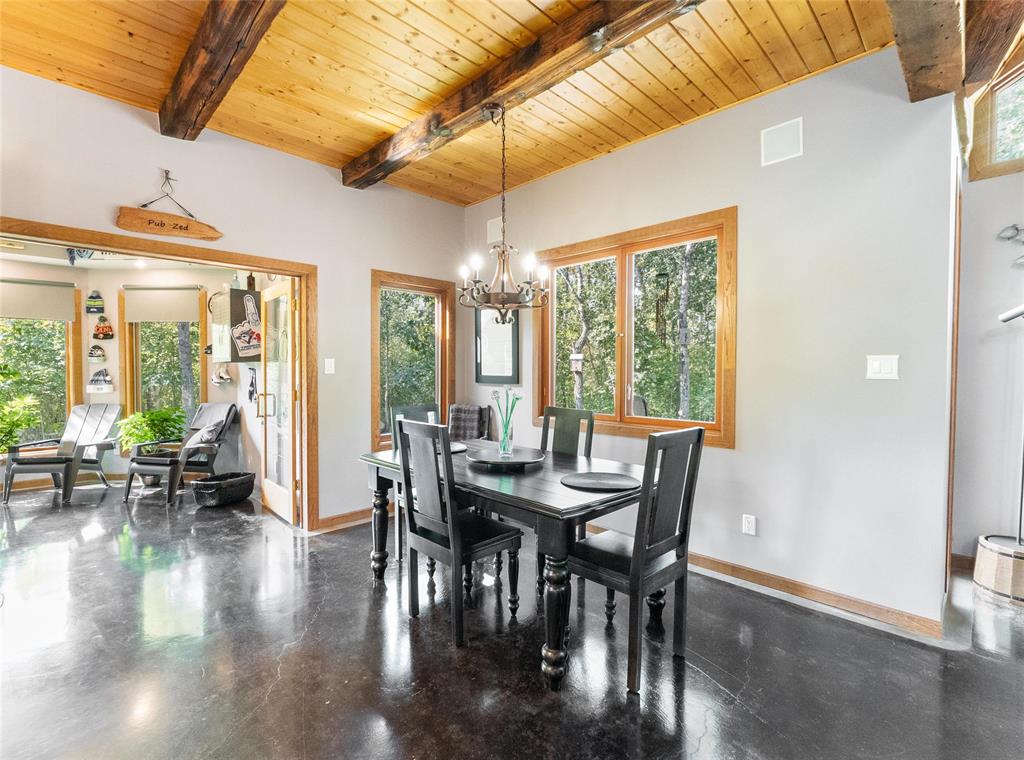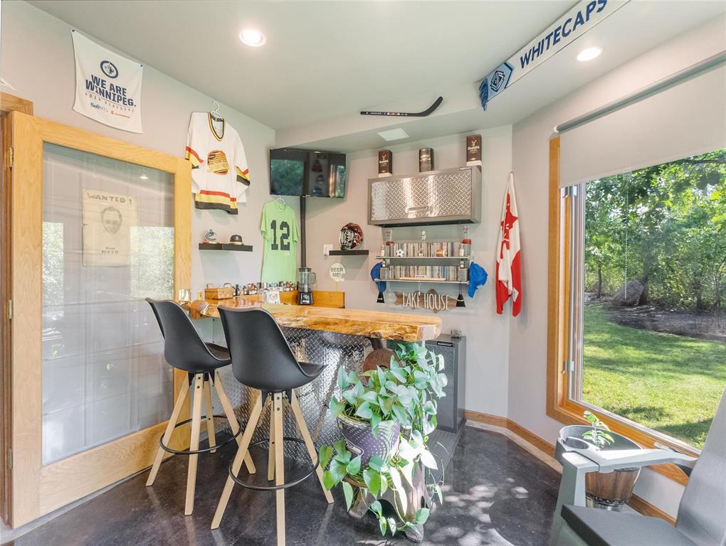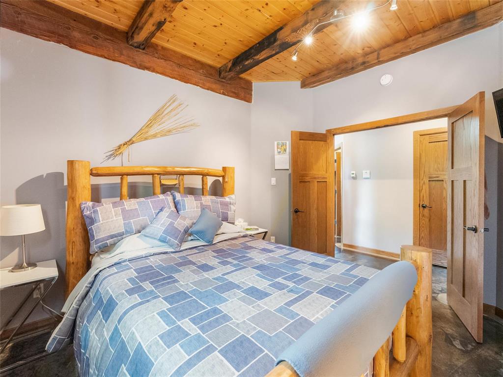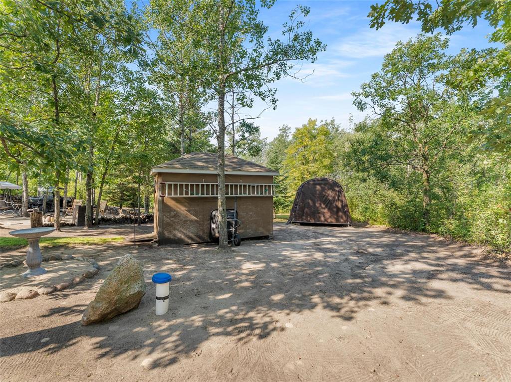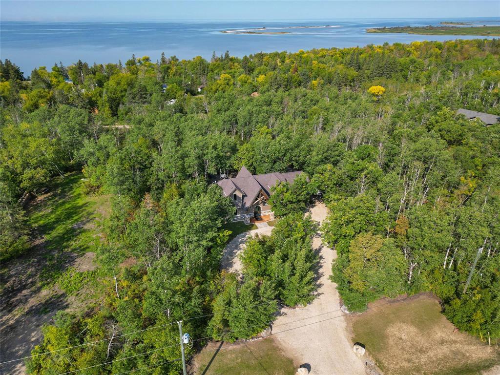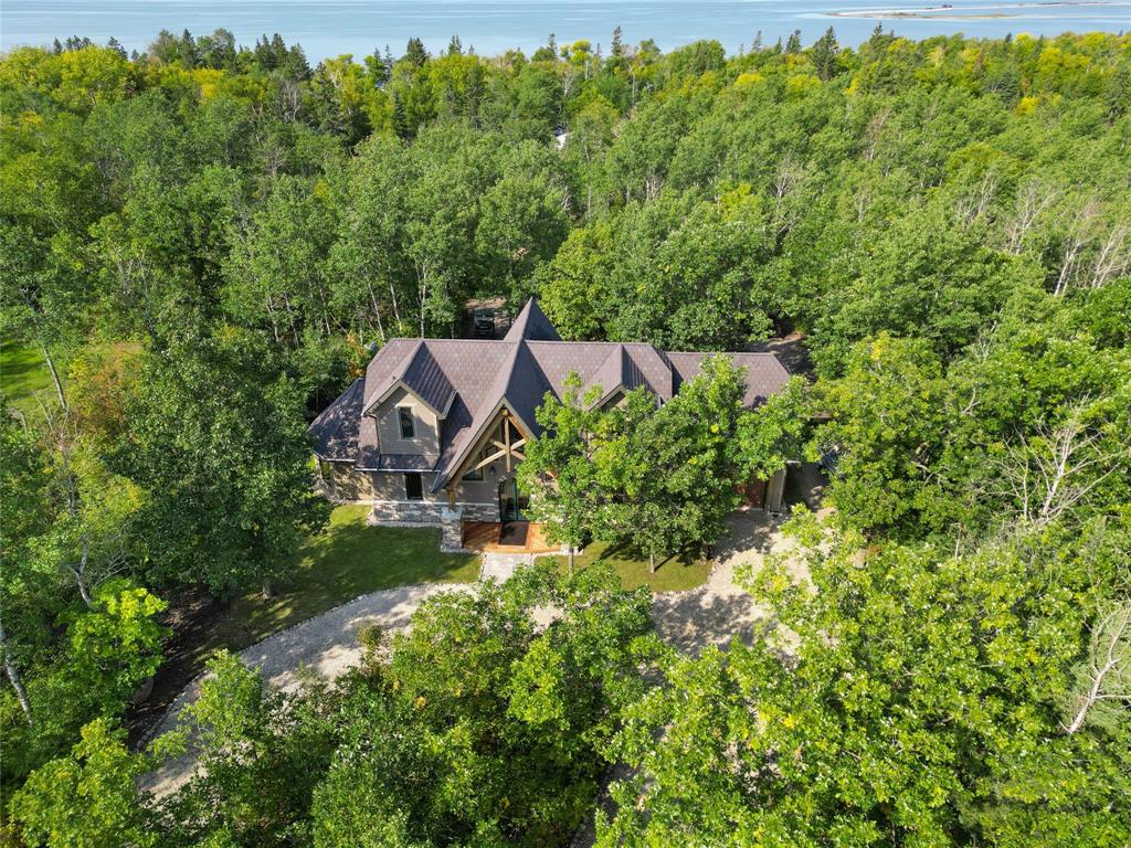 Welcome to this absolutely stunning custom built 2,340 sq ft Timber Frame home located on a .62 acre private treed park like yard that's sure to impress. Saying there's a WOW factor is an understatement. From the minute you walk through the door you will realize your in a home like no other. The living room features a 21' vaulted ceiling, a stone fireplace, dining area & a gourmet kitchen w/a sit at island. French doors lead to a space currently used as a sports bar room, a great place to entertain. The main floor has a spacious bedroom, 3 pc bath, W/D & access to the garage. Head up the spectacular log style stairs where you'll find a large loft w/hardwood floors, an office area & the primary bedroom w/a gorgeous ensuite. Heated with an infloor radiant system for consistent temps, this home is warm & cozy. Concrete main floor is stained, polished and waxed. Connected to low pressure sewage system. Landscaped w/a backyard concrete patio, outdoor shower, firepit & a trail that leads to the waterfront. Several other trails for quadding and snowmobiling. This area is known for great summer & winter fishing, walking distance to the beach, Grand Beach is just a 10 min drive. Boat launch just down the road.