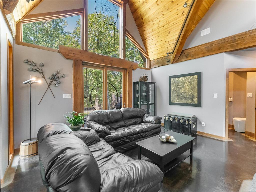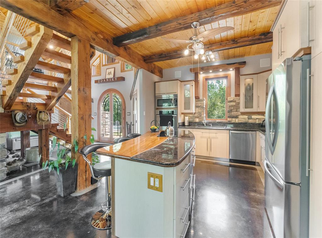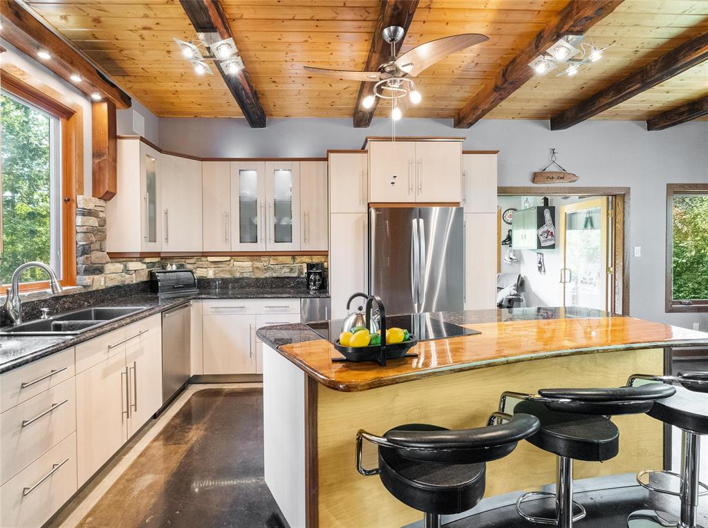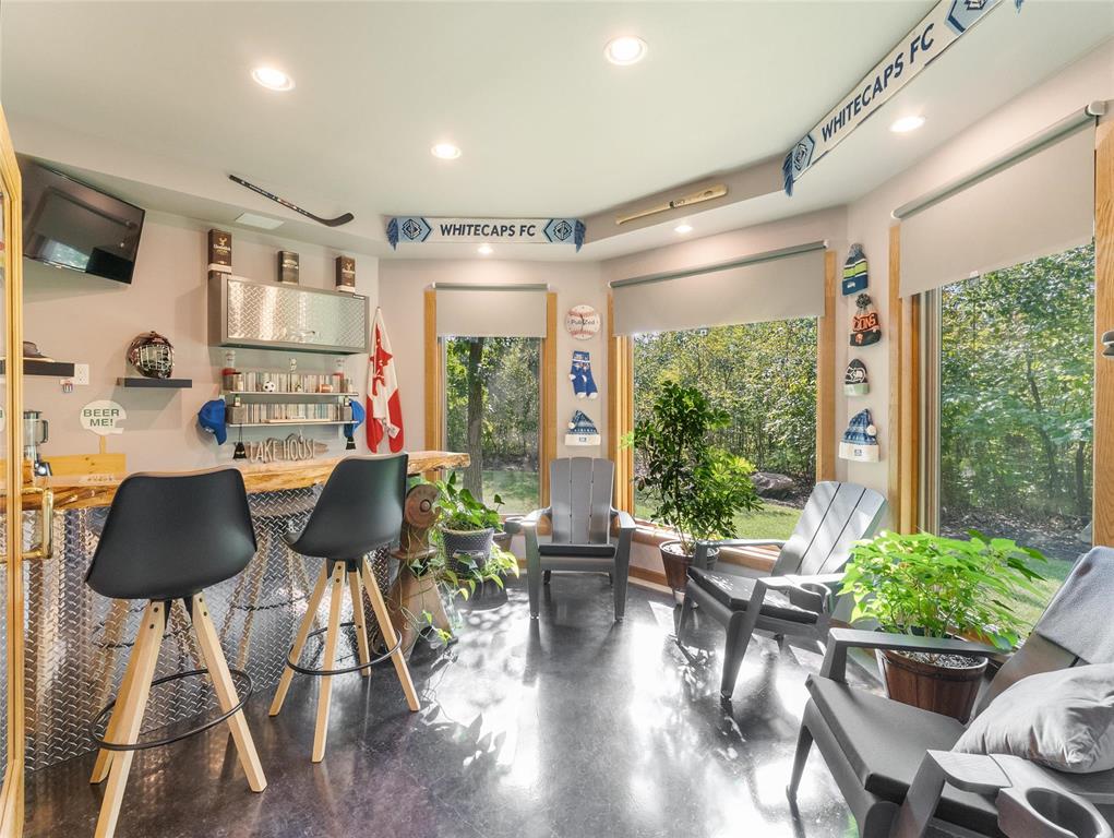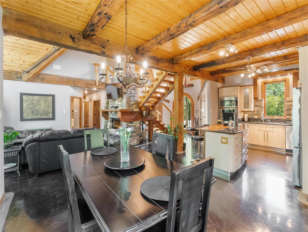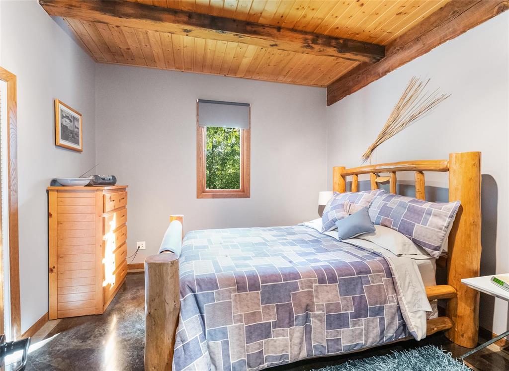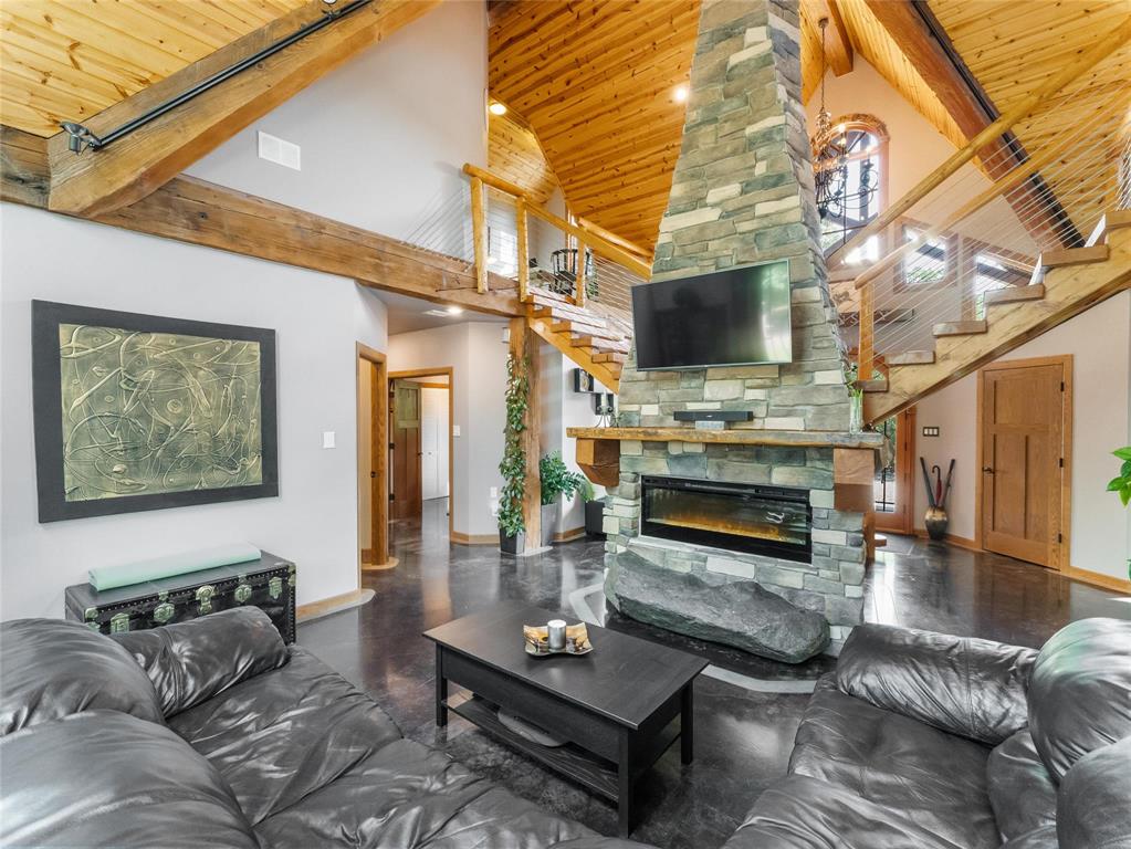 Welcome to this absolutely stunning custom built 2,340 sq ft Timber Frame home located on a .62 acre private treed park like yard that's sure to impress. Saying there's a WOW factor is an understatement. From the minute you walk through the door you will realize your in a home like no other. The living room features a 21' vaulted ceiling, a stone fireplace, dining area & a gourmet kitchen w/a sit at island. French doors lead to a space currently used as a sports bar room, a great place to entertain. The main floor has a spacious bedroom, 3 pc bath, W/D & access to the garage. Head up the spectacular log style stairs where you'll find a large loft w/hardwood floors, an office area & the primary bedroom w/a gorgeous ensuite. Heated with an infloor radiant system for consistent temps, this home is warm & cozy. Concrete main floor is stained, polished and waxed. Connected to low pressure sewage system. Landscaped w/a backyard concrete patio, outdoor shower, firepit & a trail that leads to the waterfront. Several other trails for quadding and snowmobiling. This area is known for great summer & winter fishing, walking distance to the beach, Grand Beach is just a 10 min drive. Boat launch just down the road.