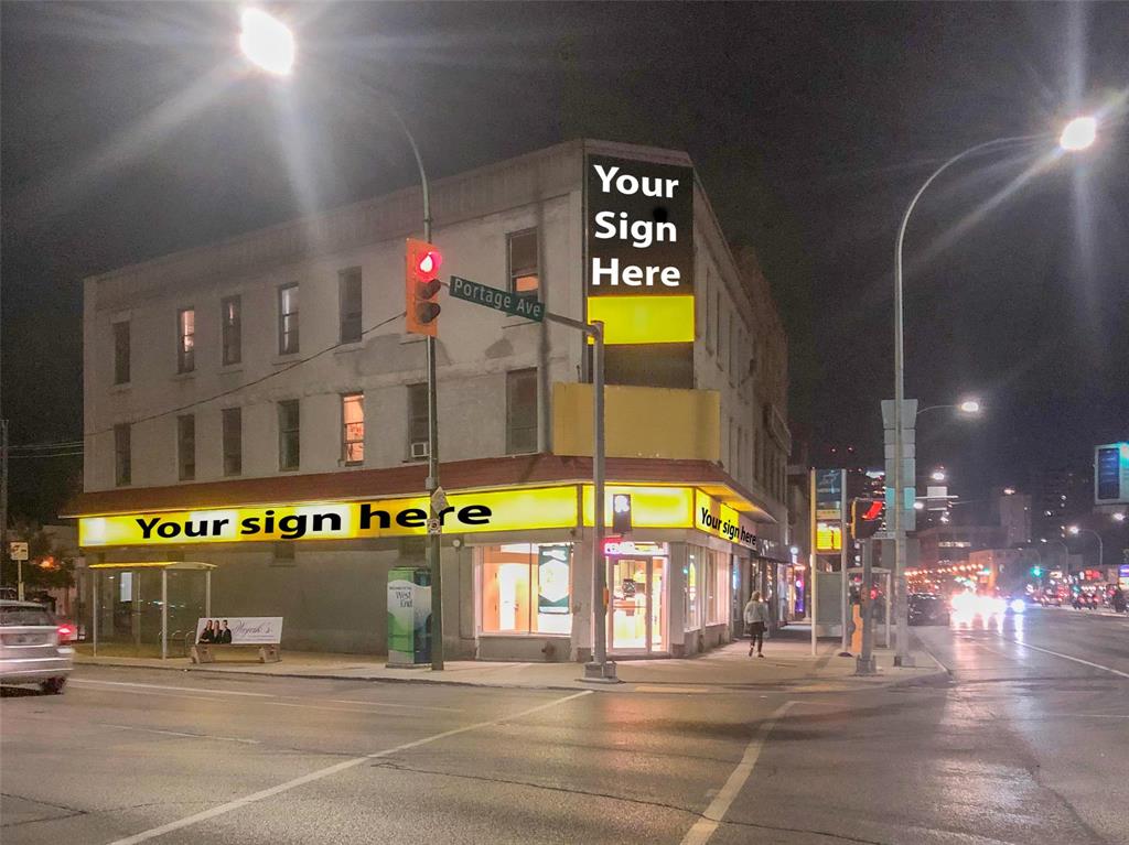 Great location at the corner of a busy intersection. Main floor corner unit approximately 1350 sq ft. Great visibility with Lots of signage. Tenant can have the use of a 15.6 x 8 foot billboard and also 93 feet of bulk head signage along Portage and Sherbrook. Large parking lot behind the building for client use. Perfect location for retail or office use. Gross rent of $5700/month