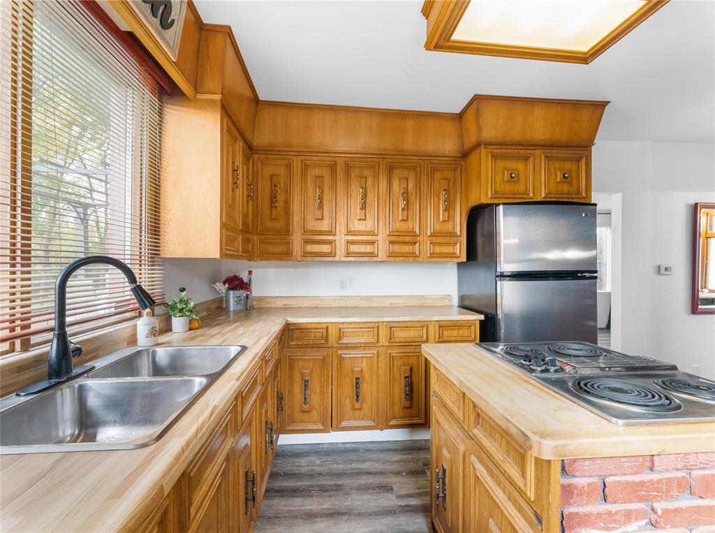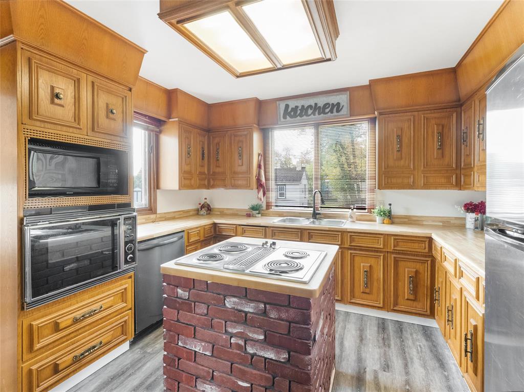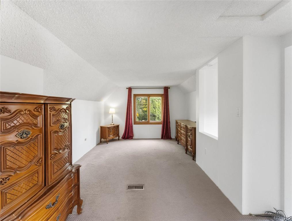 Welcome Home! This 1.5 storey home offers 1000 sq ft of living space on over 5 acres of peace and quiet and within walking distance to the half moon! It offers 2 bedrooms up (Currently converted to 1 large bedroom but easy to return to 2 bedrooms; Measurements stated as if separate). Eat in kitchen with lots of oak cabinets, built in oven, cook top and dishwasher. Living room / dining room, gas insert fireplace, 2 baths, plus an additional basement bedroom (Window may not meet egress), central air, tri-pane windows, 24 X 26 detached garage with oil burning furnace and 2 garage door openers, 3 out buildings plus a shed all with electrical. Lots of trees that make for a great nature view. Call and book your showing!
