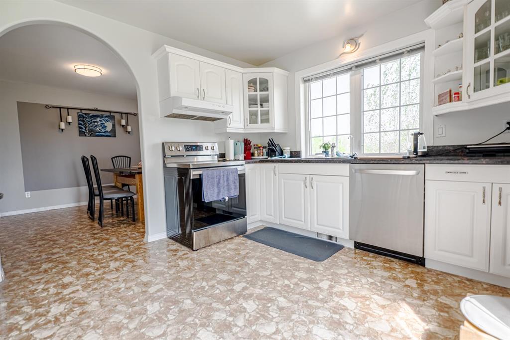 Step into a welcoming foyer with tile floors that lead into a bright, white kitchen featuring granite countertops and patio doors ready for your future deck. The formal dining area is perfect for family gatherings, while the oversized living room showcases a charming arched entryway for added character. Laundry/storage room with sink, extra storage room with direct access to the double attached insulated and heated garage.NEW SHINGLES 2025. Fresh painted 24, newer dishwasher 24, softener 23, HWT 23, Sump pump 24. NEW SHINGLES BEFORE POSSESSION
