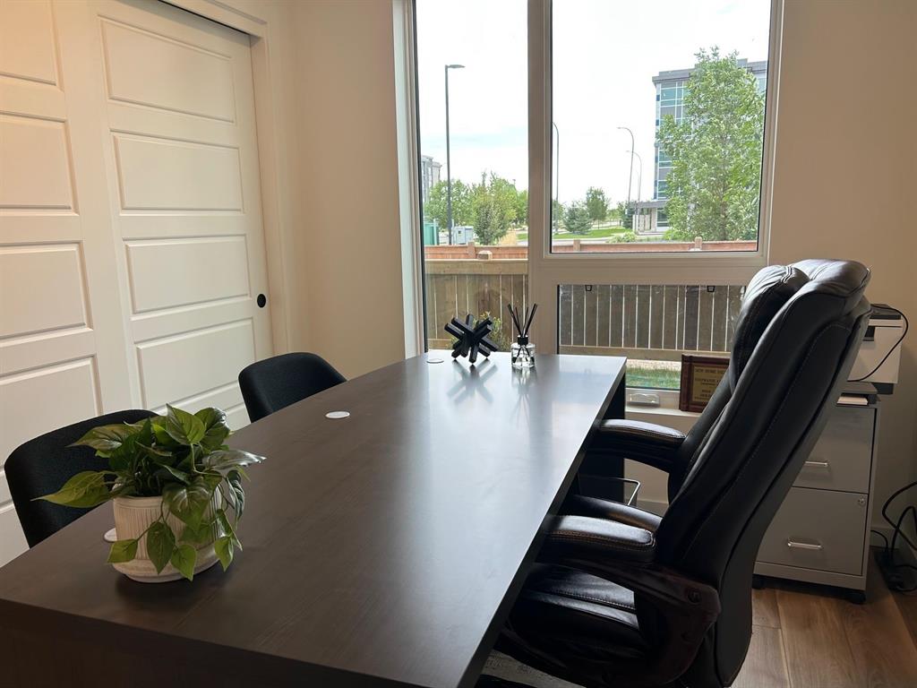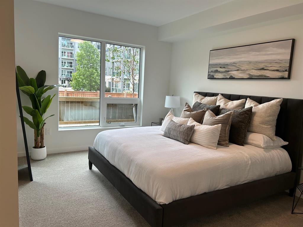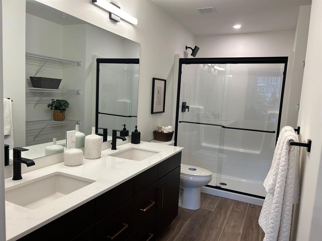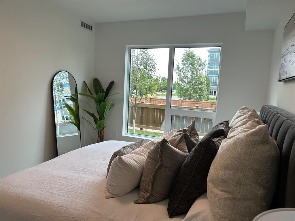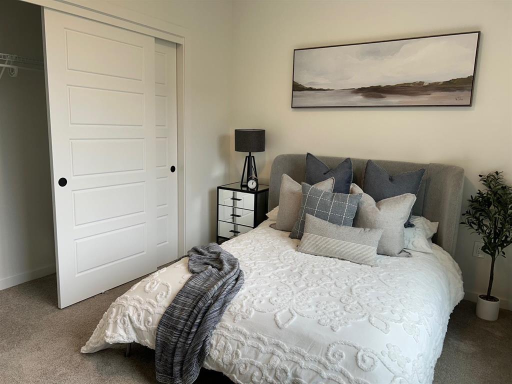 **LAST UNIT!!!** Custom upgrades galore! This wonderful 3 bedroom condo has loads of upgrades in the dreamy kitchen such as Kitchen Craft Soho thermofoil cabinets in white and sambuca, two pantries, extra pot drawers for added storage, a beverage fridge in the island and gold hardware throughout. The "F" floor plan features a nice foyer upon entering the unit and, a dedicated dining space conveniently located off the kitchen. The primary and second bedrooms have plush carpet while the third bedroom and rest of the unit have durable luxury vinyl plank flooring. The primary also has a large walk-in closet and beautiful ensuite with double sinks. Get ready to enjoy those warm summer nights on your private balcony with a glass of wine and a nice BBQ dinner. Feeling social? Head down to the owners lounge to catch a game with your neighbors or play a game of pool! The room can also be rented out for special occasions. A new well equipped gym is also onsite. One underground parking spot is included, two pets are allowed. Sage Village Condominiums is right across the street from all the restaurants, shops, and medical facilities you'll need. Showings by appointment.