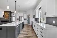 S/S now, offers presented as rec'd. Immaculate 4-bedroom home in Headingley, set on a beautifully landscaped lot. This custom modern build offers soaring ceilings & open concept design for a bright, spacious feel. A welcoming foyer opens to a versatile bedroom/office. The great room showcases an impressive floor-to-ceiling wood feature wall, cozy fireplace & wall of windows overlooking the backyard. The dining area includes a handy built-in work space & patio doors lead to a tiered deck with pergola...perfect for entertaining. The island kitchen features stainless appliances, quartz counters, corner pantry & breakfast bar. The primary suite has a WICC & spa-inspired 4-piece ensuite with double vanity & walk-in shower. A guest bath with laundry adds convenience. The fully finished basement offers a rec room, games area with wet bar, 2 bedrooms, 3-piece bath & plenty of storage. Heated triple attached garage (36’x24’) with water tap & yard access. Backyard backs onto walking path with underground sprinklers, RV/boat pad & mature landscaping. Piled foundation, steel beam construction, C/AIR, C/VAC, HRV, HEF & sump pump. Pride of ownership is evident throughout! Nothing to do but move in & enjoy!