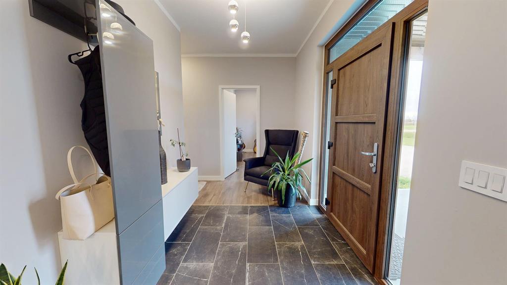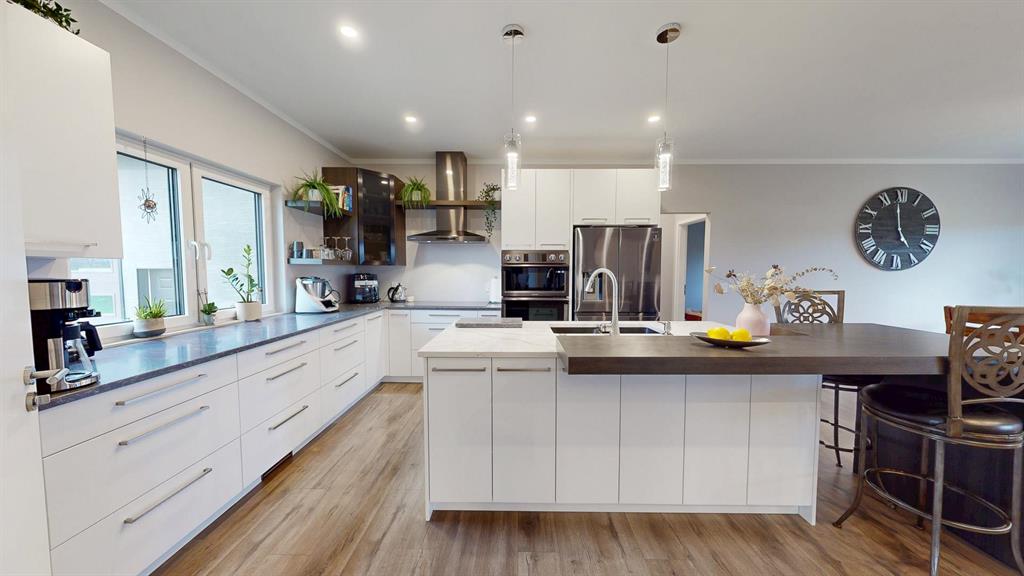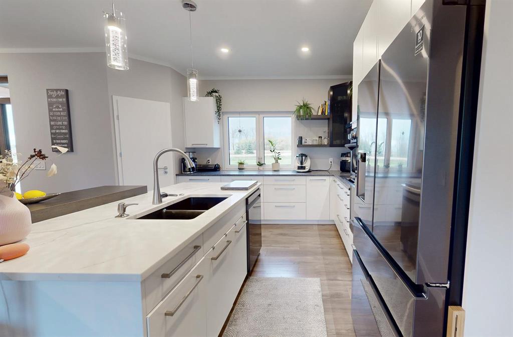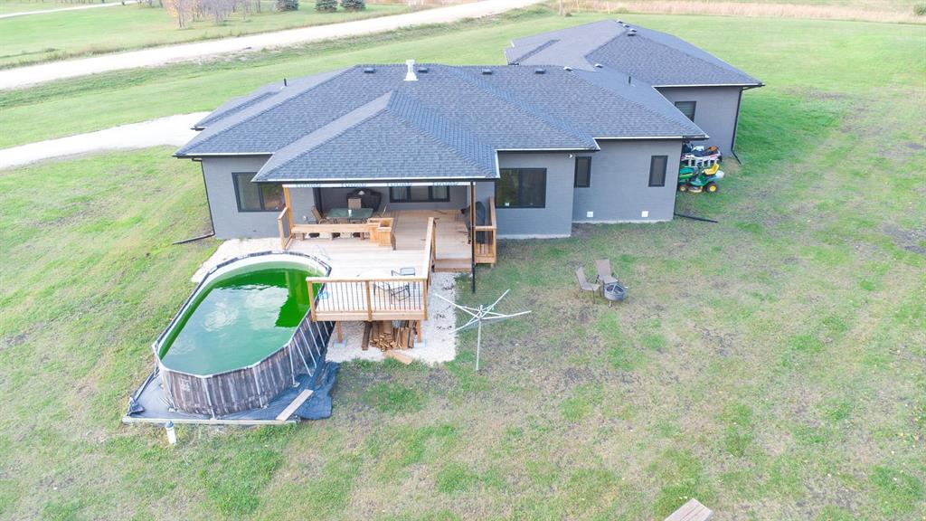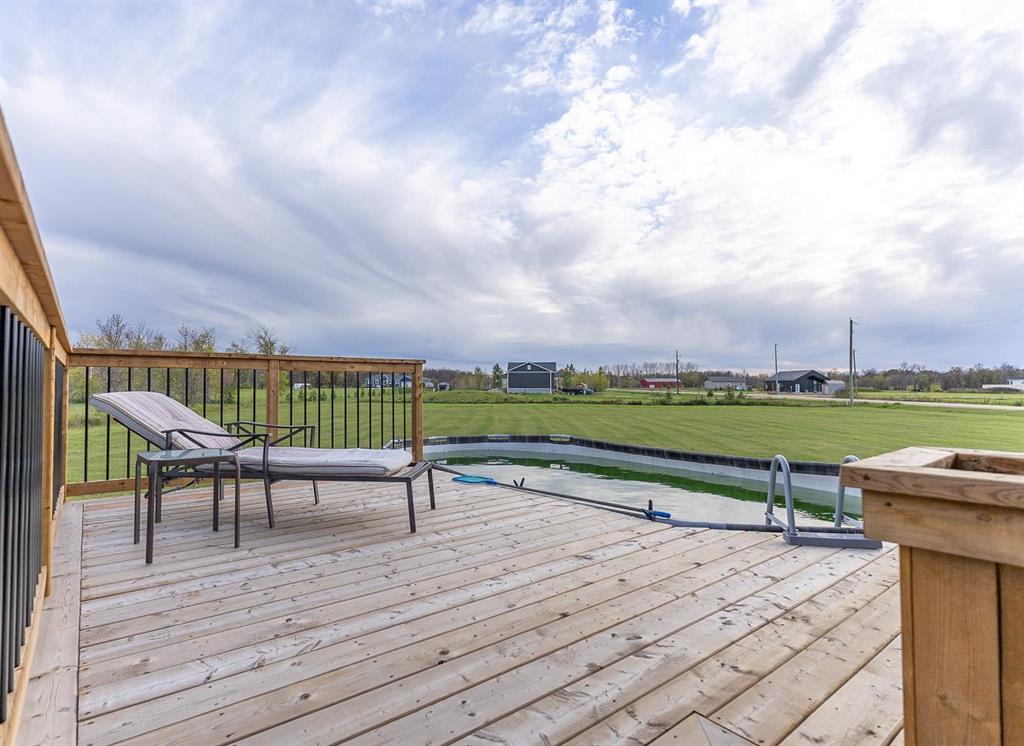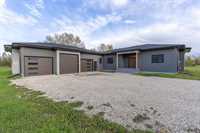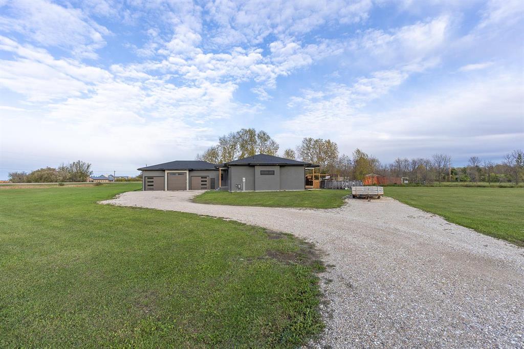 Welcome to this stunning modern home situated on a sprawling 2-acre lot just 12 minutes from Winnipeg! This beautifully designed property offers 4 spacious bedrooms and 2 bathrooms, perfect for families or those seeking extra space. The open-concept layout seamlessly connects the kitchen, dining, and living areas—ideal for entertaining and everyday living. The kitchen features sleek countertops, a large island, and ample storage, while the bright and airy living room is highlighted by oversized windows that flood the space with natural light. The primary bedroom is a serene retreat, complete with a private ensuite bath. Two additional generous bedrooms offer comfort and flexibility, while a fourth room serves as a bedroom or home gym. A second full bathroom adds convenience for guests and family. The home showcases premium European-style doors and windows throughout, adding both style and energy efficiency. Enjoy the outdoors on the expansive deck overlooking the above-ground pool—perfect for summer fun. The attached triple garage offers 1,400 sqft of space for vehicles, tools, and more. Don’t miss this rare opportunity to enjoy modern living with room to roam—all within minutes of the city!