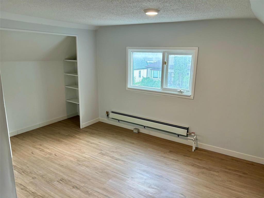 Offers as received. Fast possession possible. Welcome to this 3 bedroom, 1.5 bathroom East Elmwood home! You will be impressed with the large eat in kitchen with new cabinets and vinyl plank flooring throughout the main floor including the spacious dining room/living room. Upstairs are 3 decent sized bedrooms and a full bathroom. Downstairs is a full basement, 1/2 bathroom and loads of storage. Out back a parking pad and single detached garage. Out front enjoy your summer evenings in the South facing porch! WOW! Book your private viewing now!!