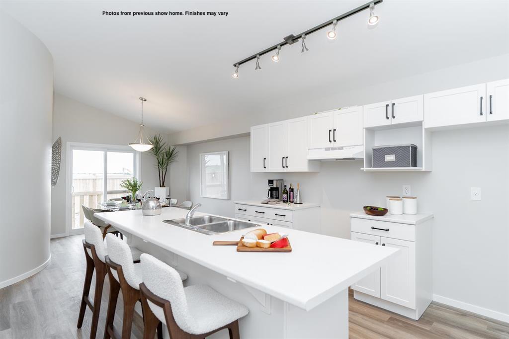 Brand new bungalow available for quick possession in Prairie Pointe with separate entry to lower level. The Sophia plan by Hilton Homes offers 3 bedrooms, 2 full bathrooms & double attached garage with open concept living and large windows & tons of natural light. You are greeted by a large covered front porch, Luxury Vinyl Plank flooring on the main floor & the bedrooms have carpet, 9' ceilings & vaulted ceilings in the kitchen, dining room & primary bedroom. The main floor also offers stackable laundry room, large island in the kitchen with quartz countertops & sliding patio door to the rear yard. Lower level has 9' foundation walls, additional hook ups for 2nd set of laundry, 200 Amp panel. Photos from previous show home, finishes may vary.