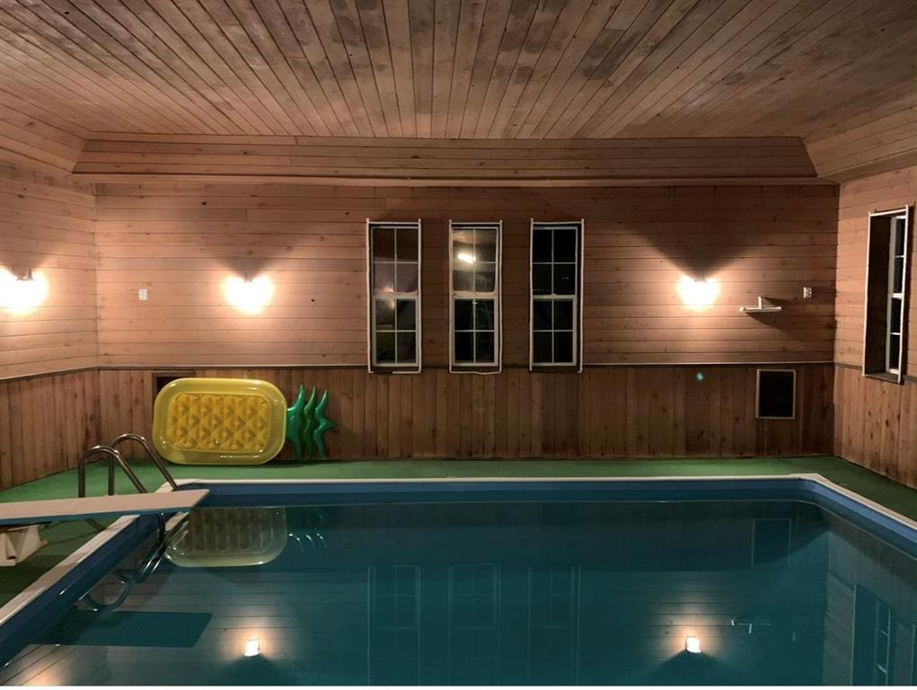 Rare opportunity! A developers and/or builders dream! This European style custom home, proudly built by the original owner who was a skilled local carpenter and house builder, sits on a large property with 2 partially subdivided lots offering road access. Perfect for a growing or multi-generational family, the home showcases a massive family/games room with wood stove, a cedar finished indoor pool with shower (pool pictures from 2022), and a rear facing 3 season sunroom. The main floor features a spacious kitchen, large formal dining room, and primary bedroom with walk-in closet, and oversized windows. Upstairs offers 2 bedrooms with custom closets, and a 3 piece bath. There is also a private self contained suite with its own kitchen, living room, bedroom, and 4 piece bath. The retro basement includes a rec room, wet bar, 2 dens, and laundry. Completing the property is an oversized double detached garage/workshop, multiple storage sheds, and plenty of beautiful treed outdoor space. Endless opportunity, whether you sell the lots, build on them yourself, or create your vision, it’s a blank canvas!