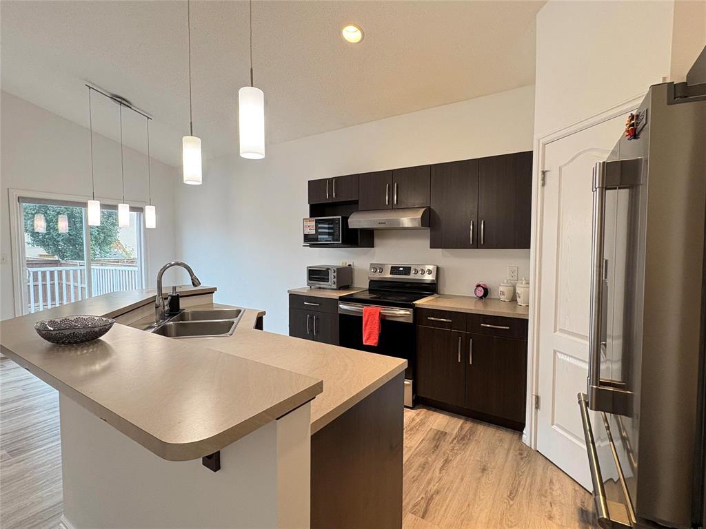 S/S now. Offers as received. PRICE REDUCED!!! Beautiful TOTAL 6 BEDROOM Bungalow with 3 FULL BATHROOMS, finished basement and double attached insulated and drywalled garage with direct entry situated in desirable South Pointe. Fantastic location! Located on a Quiet street and close to Schools, Buses, Parks, U of M, Hospital and Shopping. The main floor has Spacious Living room, Dining Room, Family Room and Eat-in Kitchen. Enjoy bright, open living areas with custom blinds, vaulted ceilings with pot lighting a beautiful modern kitchen features a large island, pendant lighting, beautiful cabinetry, stainless steel appliances, corner walk-in pantry and patio doors to a wood deck with railing off the dining area. Large primary bedroom with a Walk-in closet and 3piece en-suite Bathroom. 2 more good sized bedrooms with a full 4 piece bathroom. Lower level features large rec-room area, 3 additional bedrooms, and a 3 piece bath. Spacious utility/laundry room with ample storage. Fully fenced backyard, sump pump, hi-efficient furnace, central A/C (2020), upgraded flooring (2021) and shingles (2022). Move in Condition!
