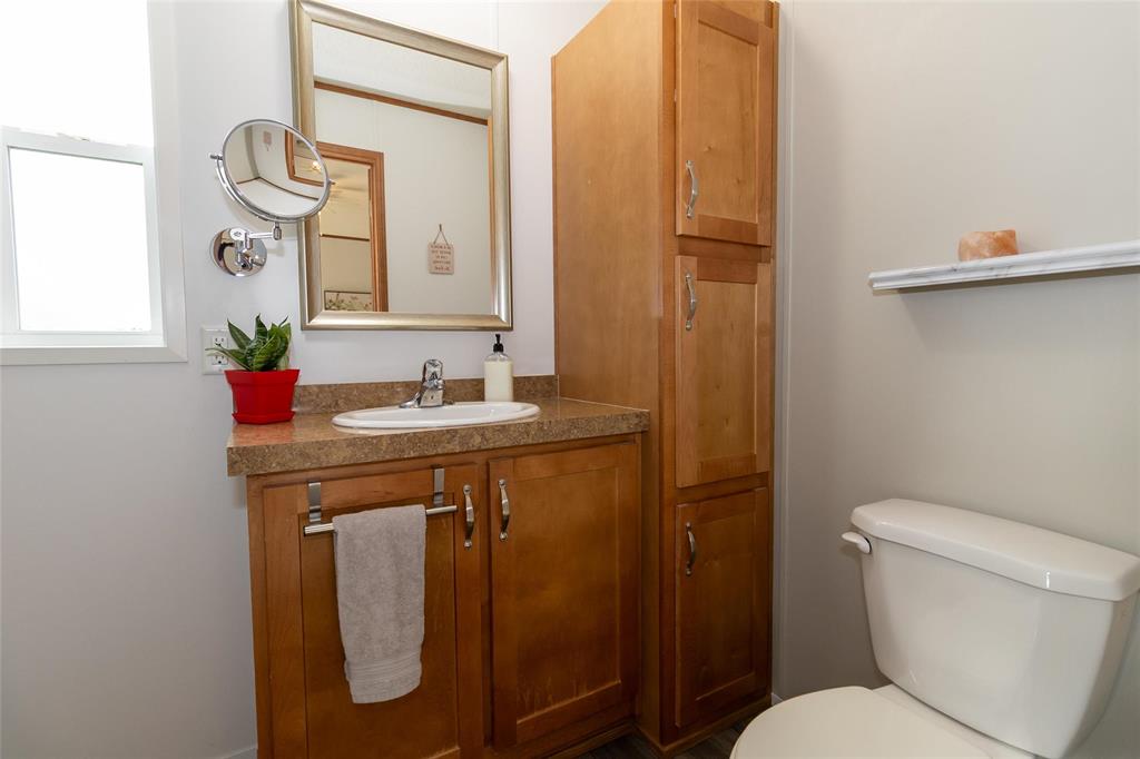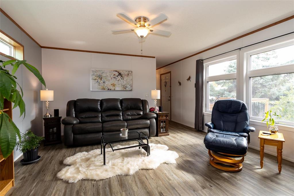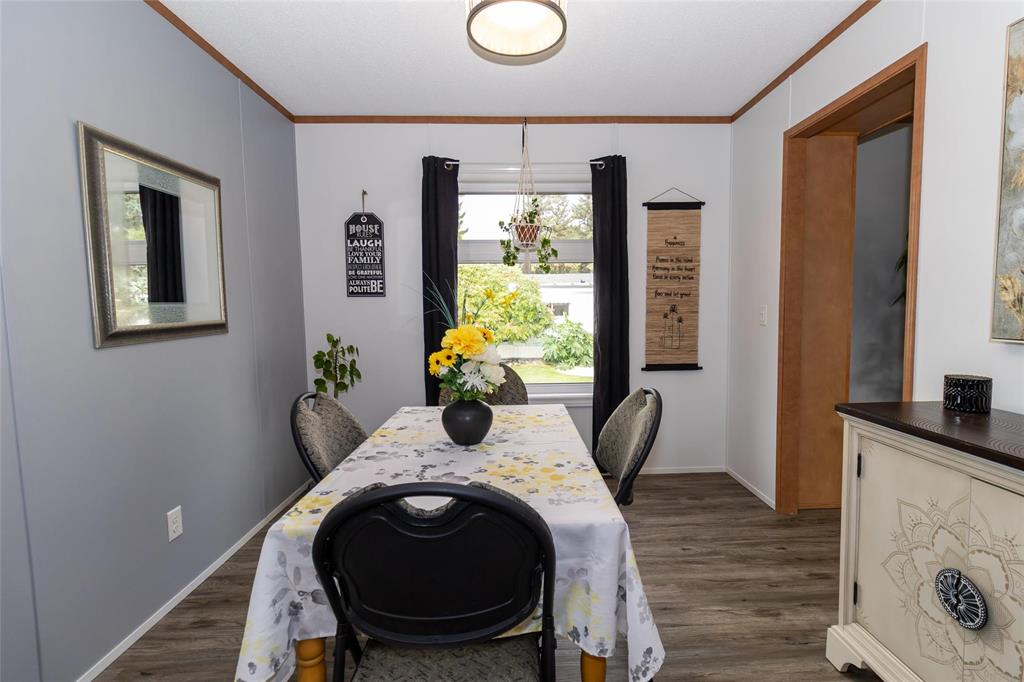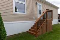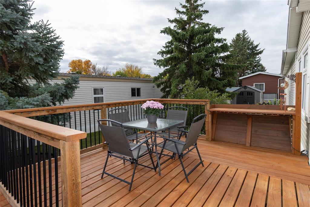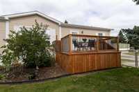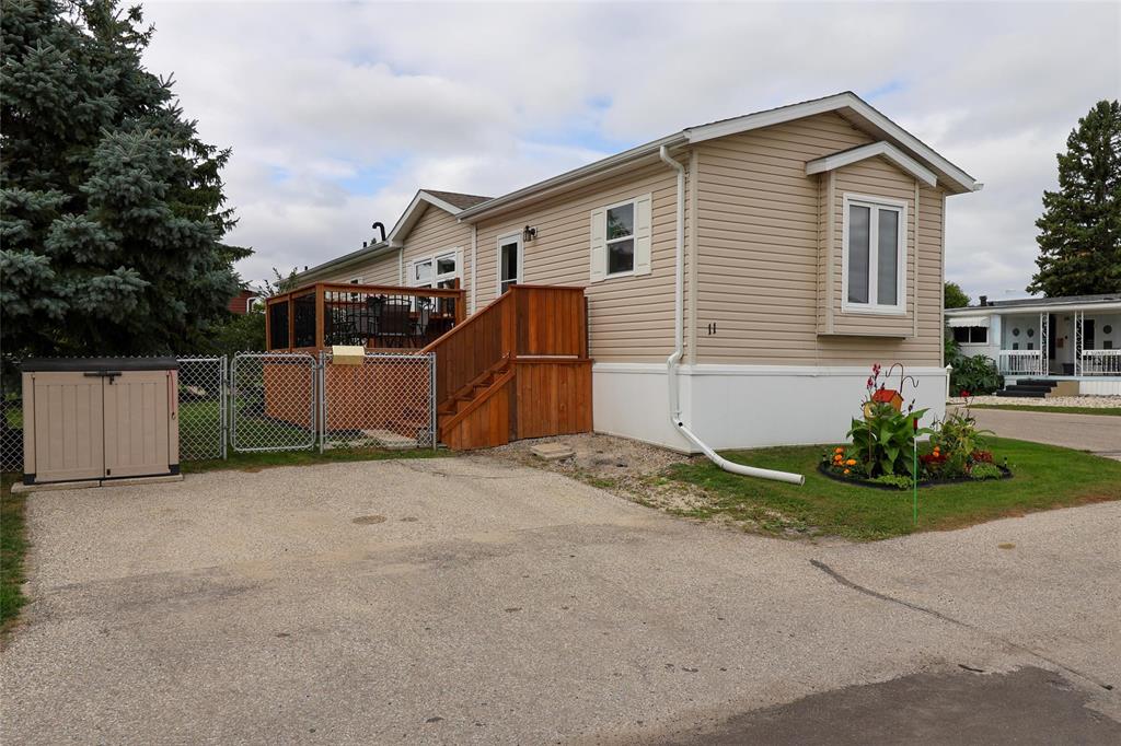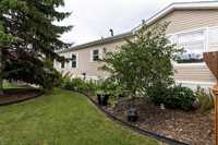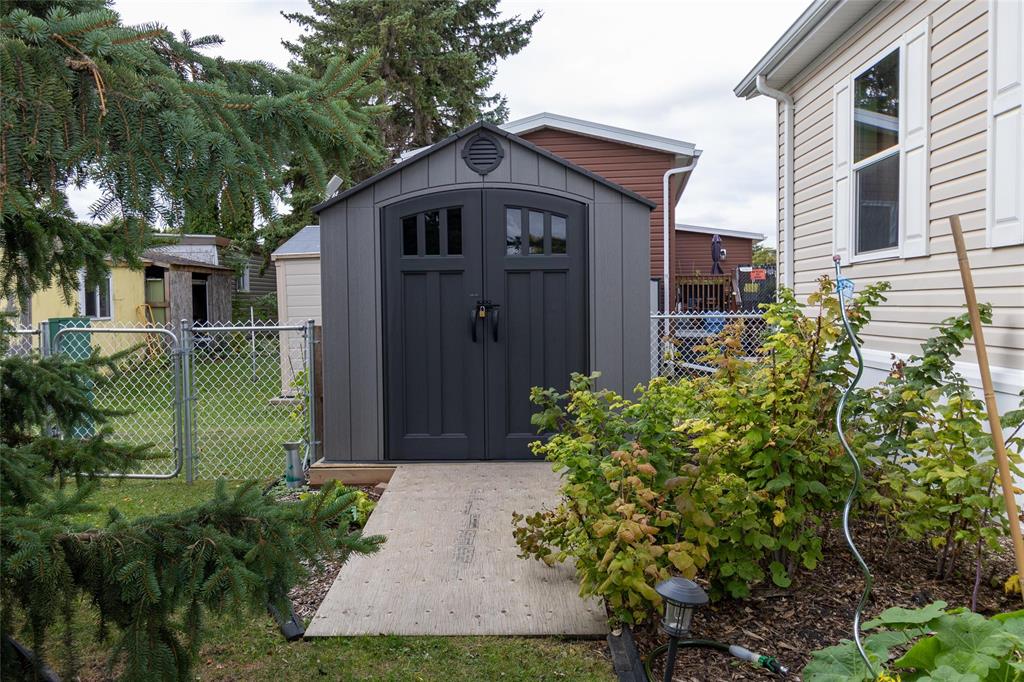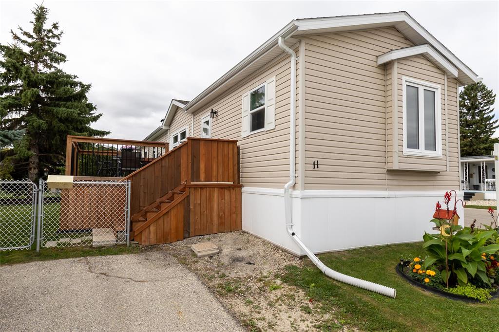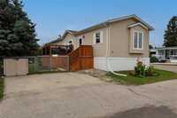 1189 sq. ft. home located in South Glen Mobile Home Community. This meticulously cared for home offers 3 bedrooms, 3 piece en suite, 4 piece main bath, spacious living room with built in shelving, eat in kitchen and main floor laundry room. Many upgrades have been done for you including fence (2022), some windows (2022), vinyl plank flooring (2024), paint (2024), landscaping (2023), light fixtures (2024), shed (2023), and extended deck (2022). There is no work to do here and pride of ownership is evident. Located on a corner lot, this community offers a pool, playground and hall, close to all amenities such as shopping, public transportation, schools and parks. The pad fees are currently $619.90/month. This lovely home is located on leased land and prospective buyers must be approved by the park. Central air and most appliances are included.