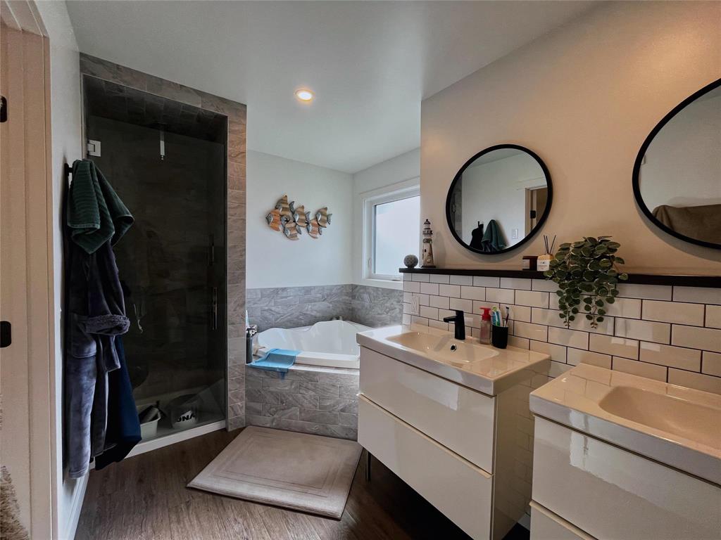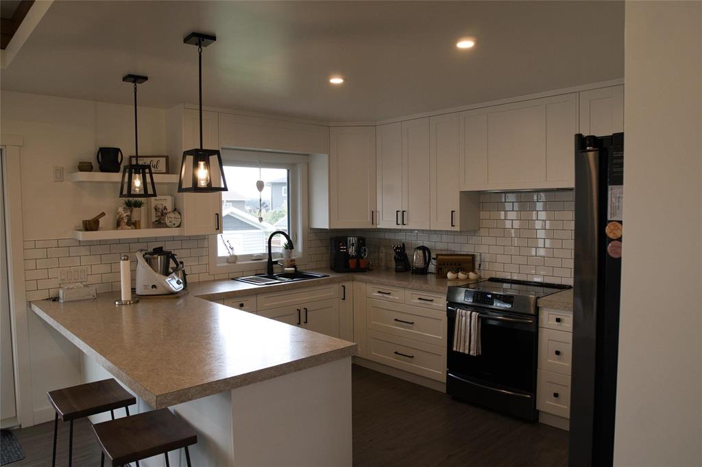 Welcome to this beautiful 1,420 sq. ft. custom-built home located in a quiet bay in the sought-after Pine Ridge Estates! This well-designed home features 4 bedrooms, 3 full baths, a bright white kitchen with black stainless steel appliances, tiled backsplash, and a covered 12' x 14' deck. The primary bedroom offers a walk-in closet and a spa-like ensuite with tiled shower and soaker tub. Additional highlights include a fenced backyard, cozy gas fireplace, high-efficiency furnace, and a spacious 26' x 26' double garage—all just minutes from schools, parks, and golf.