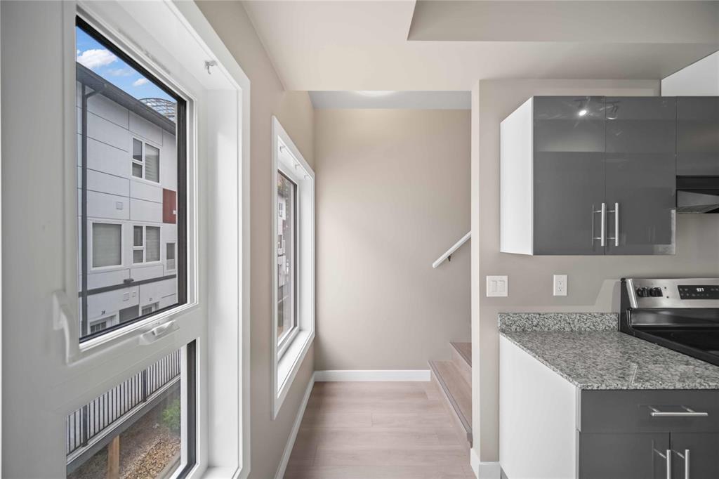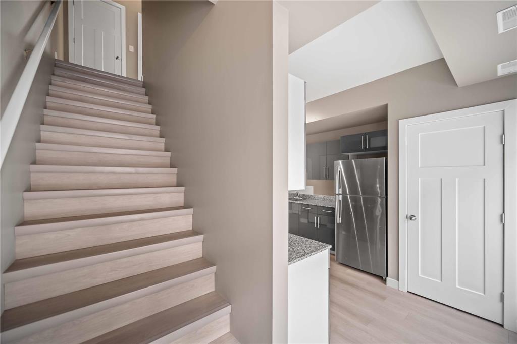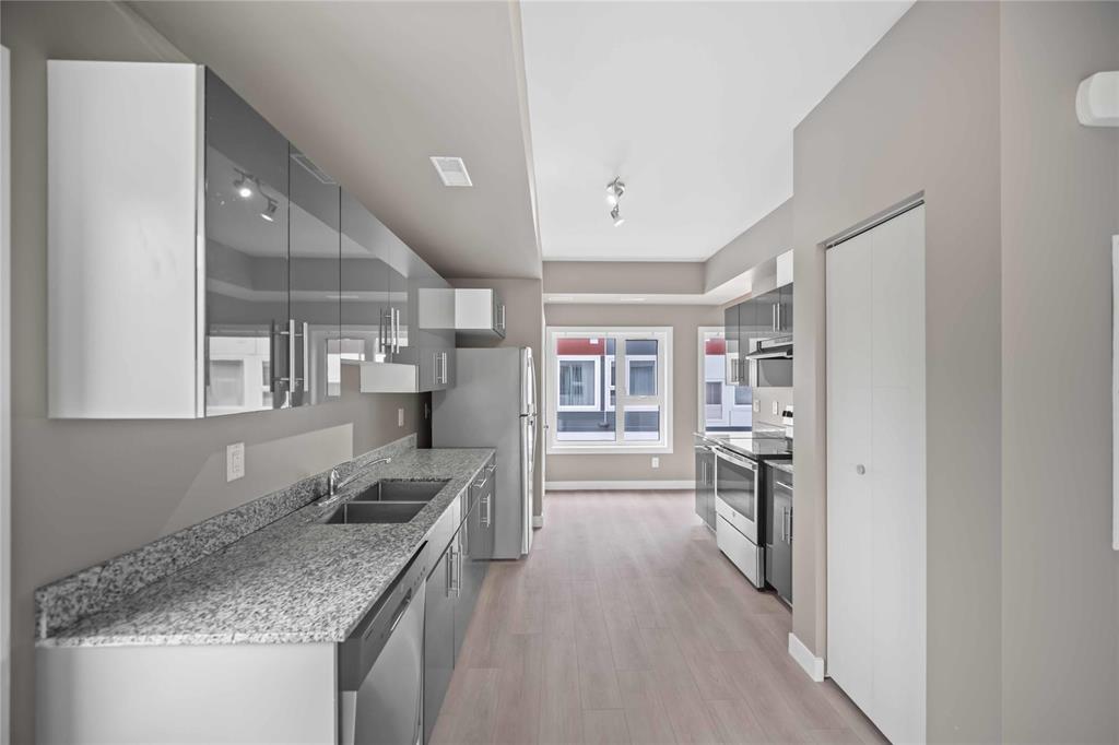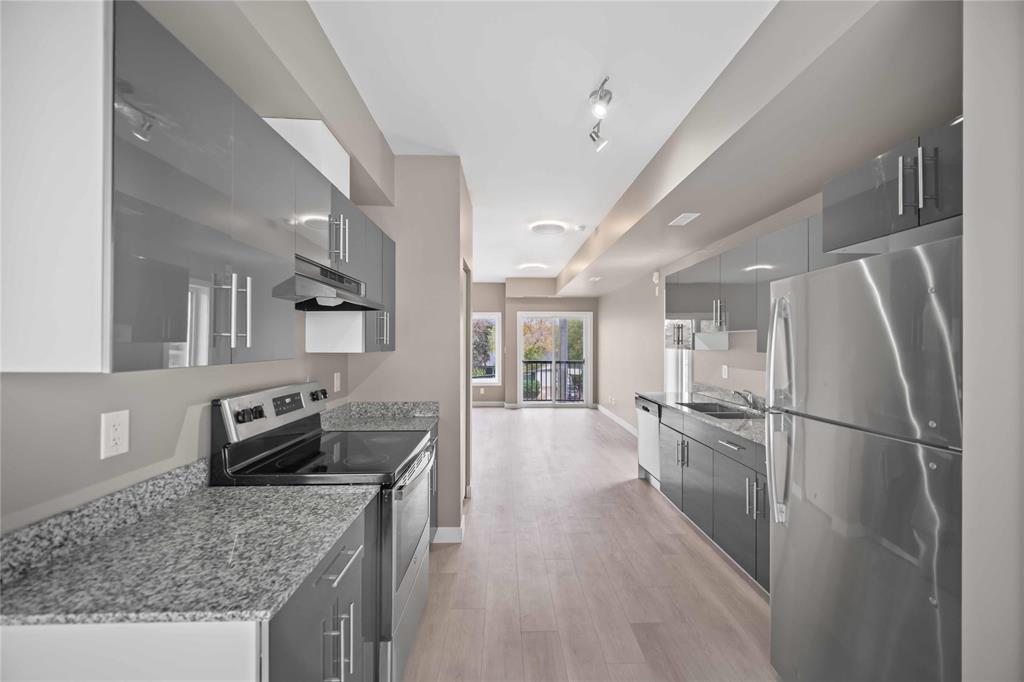 Attention, 1.89% assumable interest rate with term expiring May 2028 available! This 989 square foot condo offers functionality from it's design, in suite laundry, luxurious finishes and ease of access, with the proximity of the unit to your parking spot. As you step in, you'll be greeted by new vinyl plank floors throughout, grand 9' flat painted ceilings, spacious living and dining areas, with stainless steel appliances, gloss cabinetry and granite counters in the kitchen. On the second floor are two large bedrooms, a four piece bath, a laundry area and a balcony. All there is left to do is move in, as the unit also offers fresh paint and new baseboards throughout. Call your agent today!
