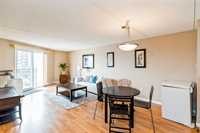 Welcome to Pembina on The Red—where convenience meets beauty in a riverside setting! This beautifully maintained 1-bedroom condo offers scenic views of the Red River from your private, south-facing balcony. Inside, you'll find a bright and functional layout with laminate flooring throughout the open-concept living and dining area. The galley-style kitchen features white cabinetry, ample storage, and a large pantry. The spacious primary bedroom includes an oversized double closet, while in-suite laundry adds everyday convenience. Enjoy peace of mind in this quiet, concrete construction building. Amenities include a fitness room, party/meeting space, double elevators, and ample visitor parking—including EV charging! Condo fees include water and a surface parking stall. Ideally located just minutes from the University of Manitoba, with shopping, restaurants, and major transit routes only steps away—this is a perfect opportunity for students, professionals, or investors alike. Don’t miss your chance to own this move-in ready condo in a prime location—book your showing today!