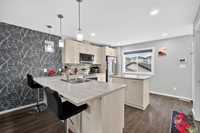 The living room is a true showstopper boasting a unique design that exudes elegance and sophistication. perfect for relaxing, entertaining or spending quality time with loved ones. The heart of the house is the luxurious kitchen featuring top-of the line appliances, ample counter space, spacious pantry. The spacious primary bedroom is a serene retreat, complete with an ensuite bathroom featuring a relaxing shower. unwind in style and luxury in your private oasis.