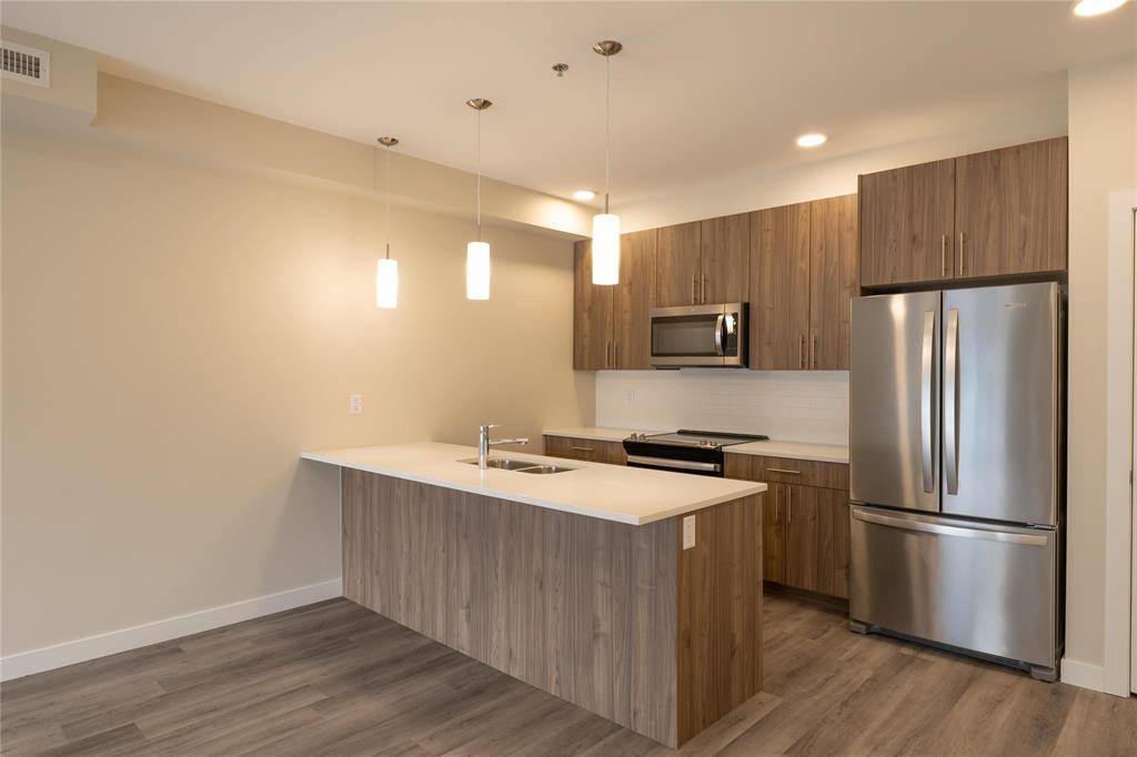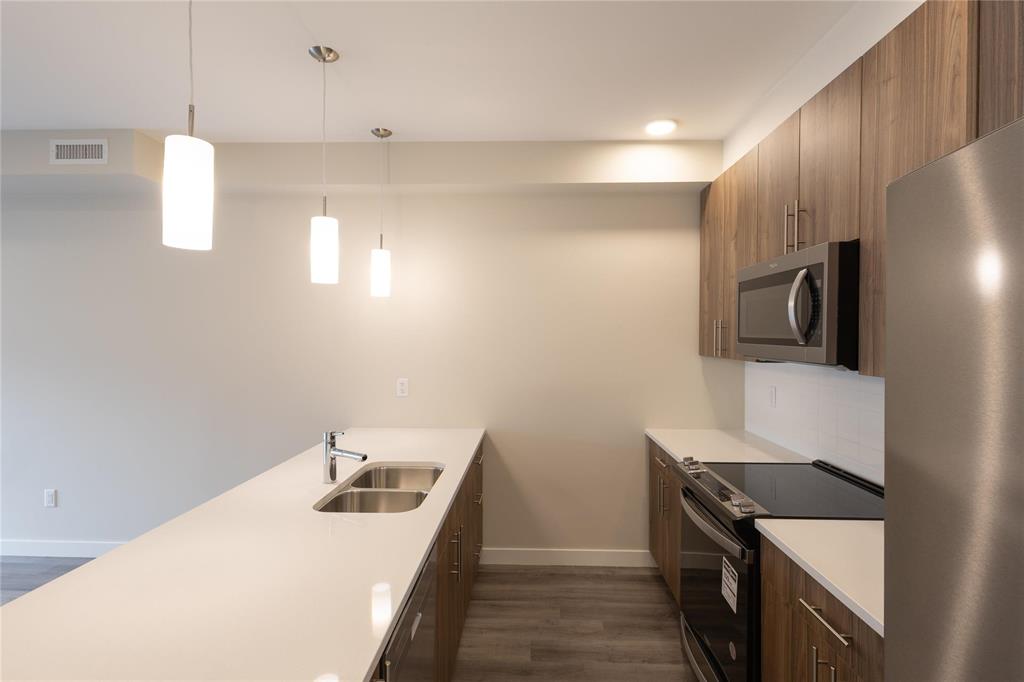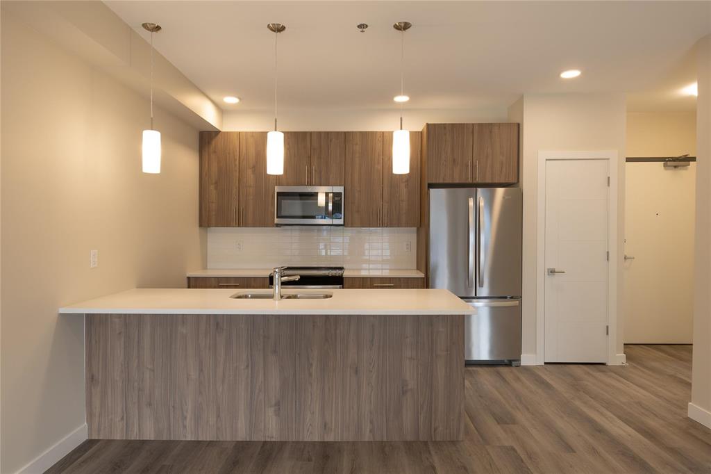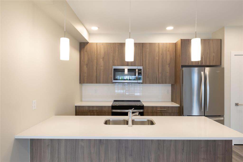 OPEN HOUSES: Thursdays 4pm-7pm, Sundays 1pm-4pm (closed on Sundays of long weekends). Welcome to Bloom & Timber - this quality constructed Irwin Homes condominium building is nestled in an ideal location! Close to walking trails, shopping, & easy access to the lake! The "Durian" layout offers 1101 sq ft w/2 bedrooms, 2 bathrooms, all appliances included, in-suite laundry, 1 underground parking stall & 1 storage locker. Step inside this functional floor plan to be greeted by vinyl plank flooring throughout the entire unit. 9' ceilings make the space feel even bigger, & natural light floods in through the large patio doors. In the kitchen, you'll find quartz countertops, ceramic tile backsplash, soft-close cabinets & drawers, a pantry, & a peninsula w/room for seating. The open concept layout is modern, & is complimented by a tasteful colour palette. The spacious primary bedroom has a walkthrough closet & 4pc ensuite bathroom w/the same quality finishes carried through. 2nd bedroom, large 3pc main bathroom, laundry room & balcony complete this unit. If you're looking for a lifestyle of convenience, Bloom & Timber has it all - Business Centre, Gym, Common Room, Owner's Lounge, Guest Suites & more!